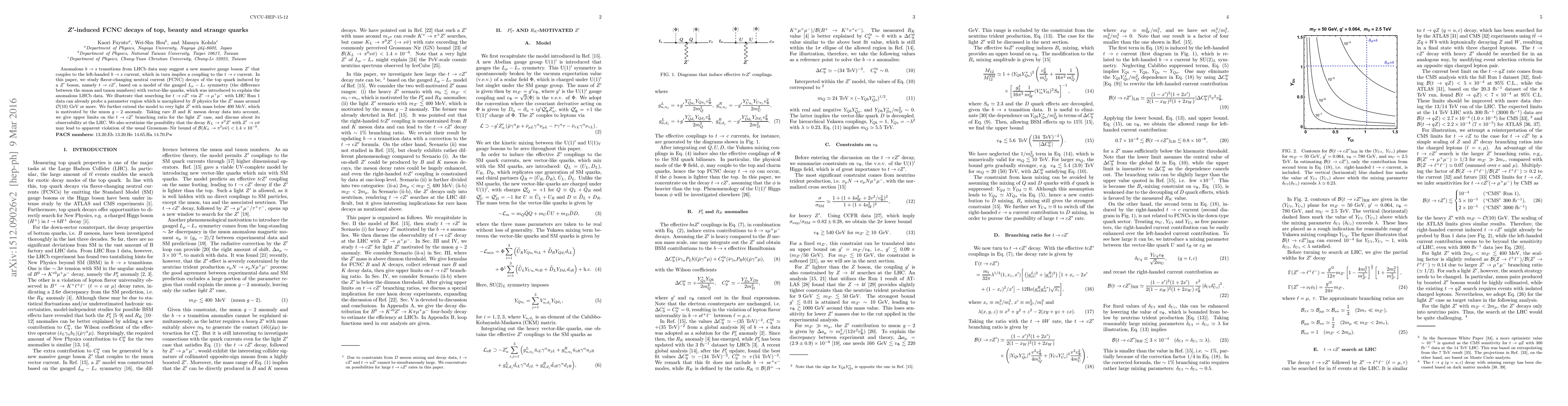 Anomalous b --> s transitions from LHCb data may suggest a new massive gauge boson Z' that couples to the left-handed b --> s current, which in turn implies a coupling to the t --> c current. In this paper, we study flavor-changing neutral current (FCNC) decays of the top quark induced by a Z' boson, namely t --> c Z', based on a model of the gauged L_mu - L_tau symmetry (the difference between the muon and tauon numbers) with vector-like quarks, which was introduced to explain the anomalous LHCb data. We illustrate that searching for t --> c Z' via Z' --> mu^+ mu^- with LHC Run 1 data can already probe a parameter region which is unexplored by B physics for the Z' mass around O(10) GeV or more. We further extend the model to very light Z' with mass below 400 MeV, which is motivated by the muon g-2 anomaly. Taking rare B and K meson decay data into account, we give upper limits on the t --> c Z' branching ratio for the light Z' case, and discuss about its observability at the LHC. We also scrutinize the possibility that the decay K_L --> pi^0 Z' with Z' --> nu nubar may lead to apparent violation of the usual Grossman-Nir bound of B(K_L --> pi^0 nu nubar) < 1.4 x 10^-9.