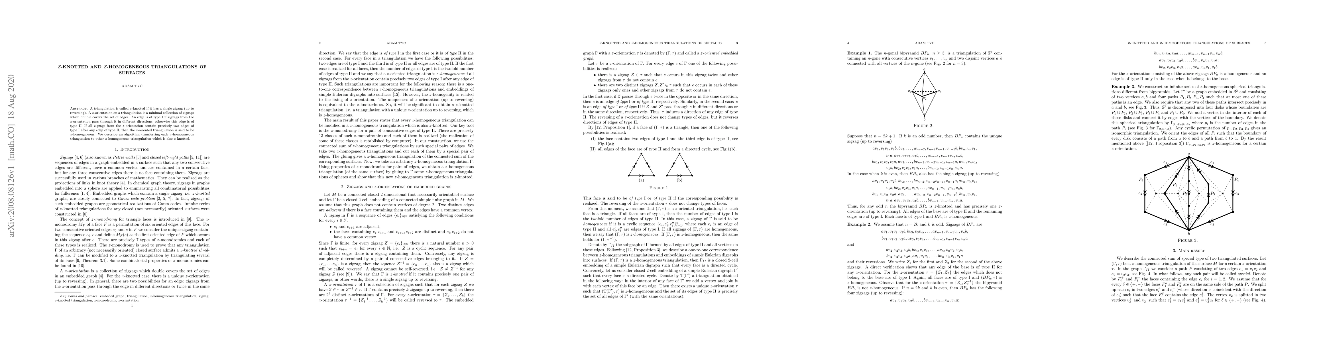 This paper explores $z$-knotted and $z$-homogeneous triangulations of surfaces, defining $z$-knotted triangulations with a single zigzag and $z$-homogeneous triangulations where zigzags follow a specified pattern. It presents an algorithm to convert any $z$-homogeneous triangulation into another $z$-homogeneous and $z$-knotted one.