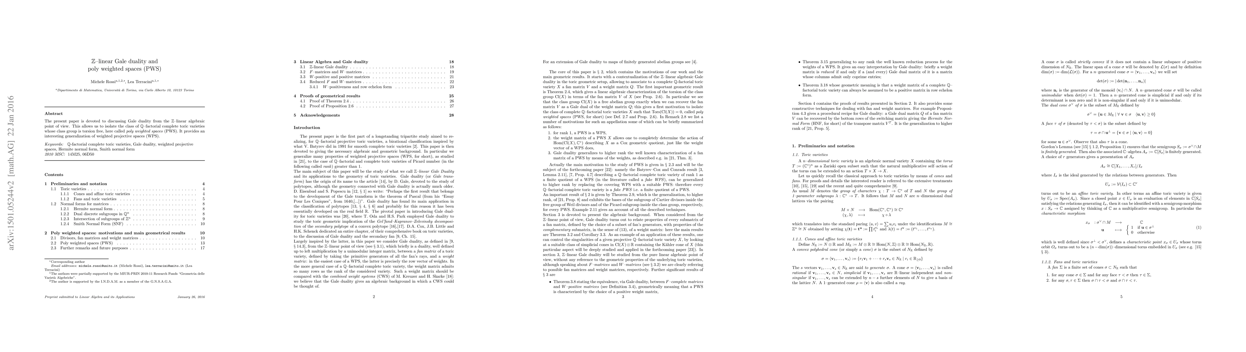 Summary: This paper explores Gale duality through Z-linear algebra, introducing poly weighted spaces (PWS) as a torsion-free generalization of weighted projective spaces (WPS), focusing on Q-factorial complete toric varieties.
