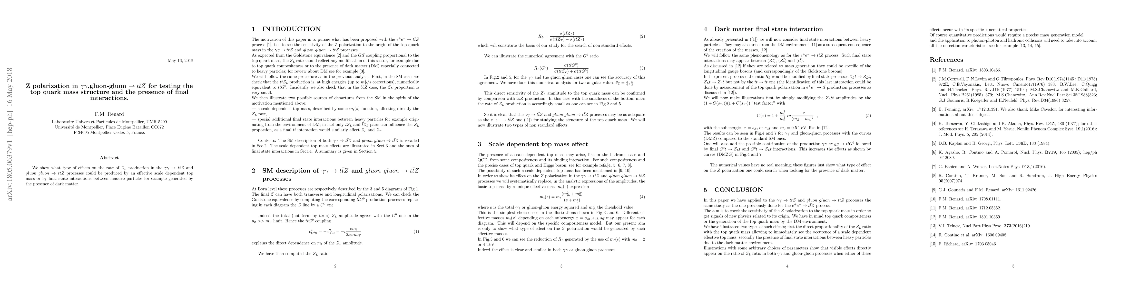This paper investigates the effects on the production rate of left-handed $Z$ bosons in $\gamma\gamma$ and gluon-gluon fusion processes leading to $t\bar t Z$, exploring potential influences from an effective scale-dependent top mass or final state interactions, possibly due to dark matter.