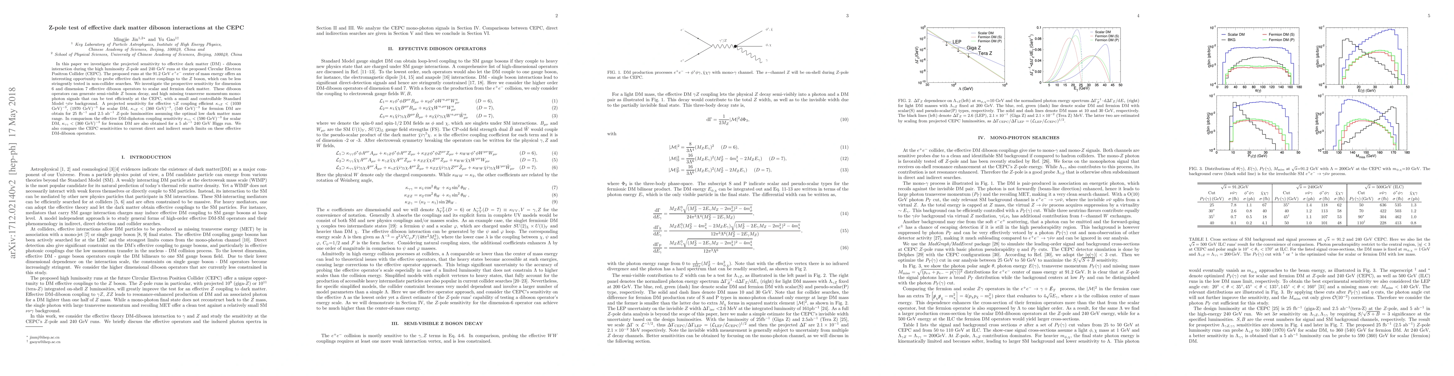 The CEPC proposes a study on effective dark matter diboson interactions using high luminosity Z-pole runs, aiming to probe scalar and fermion DM with high sensitivity to certain coupling constants.