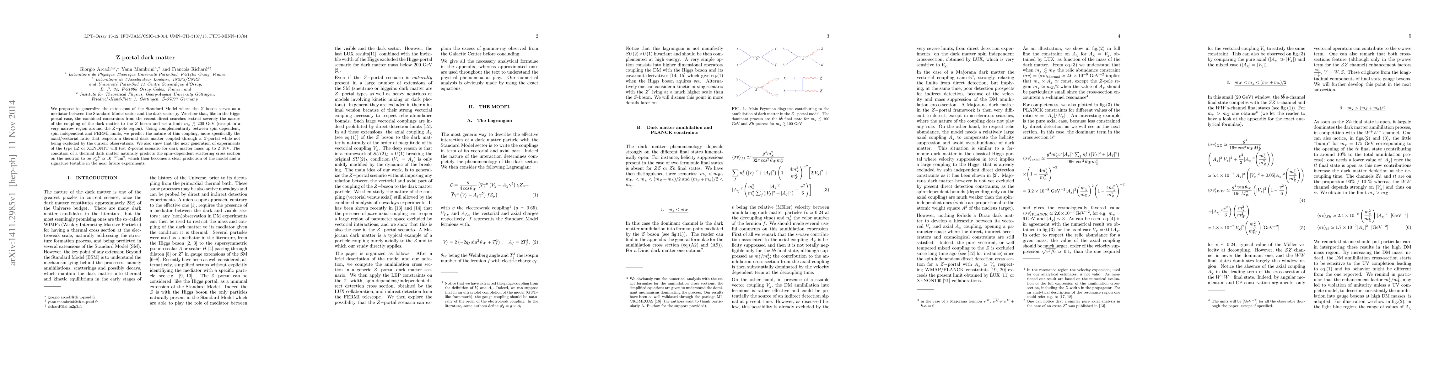 This paper proposes a $Z$-portal dark matter model where the $Z$ boson mediates interactions between the Standard Model and dark matter sector. It predicts that the dark matter mass should be $m_\chi \gtrsim 200$ GeV, with a specific axial/vectorial ratio that aligns with thermal dark matter and is testable by upcoming experiments like LZ or XENON1T up to 2 TeV.