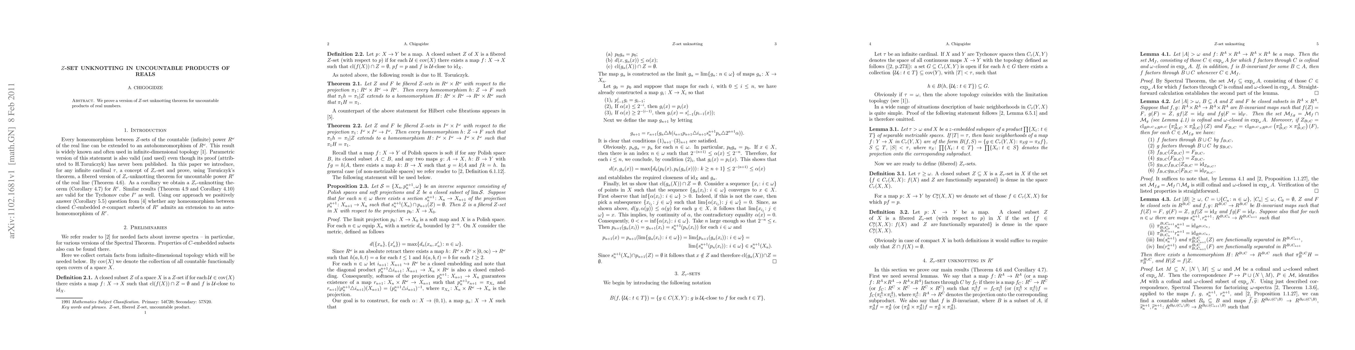 We prove a version of $Z$-set unknotting theorem for uncountable products of real numbers.