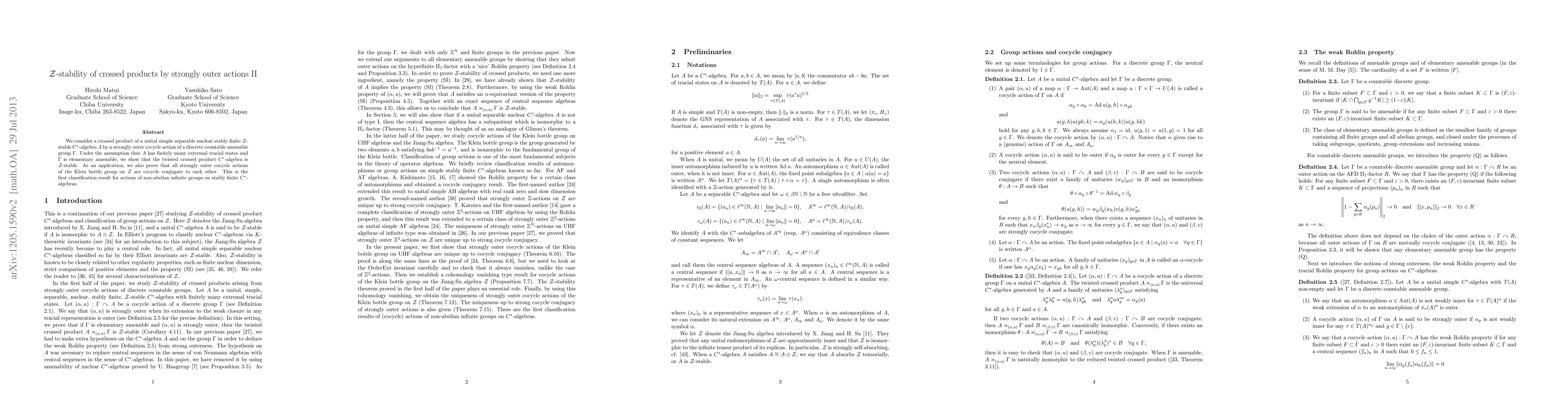 We consider a crossed product of a unital simple separable nuclear stably finite Z-stable C*-algebra A by a strongly outer cocycle action of a discrete countable amenable group \Gamma. Under the assumption that A has finitely many extremal tracial states and \Gamma is elementary amenable, we show that the twisted crossed product C*-algebra is Z-stable. As an application, we also prove that all strongly outer cocycle actions of the Klein bottle group on Z are cocycle conjugate to each other. This is the first classification result for actions of non-abelian infinite groups on stably finite C*-algebras.