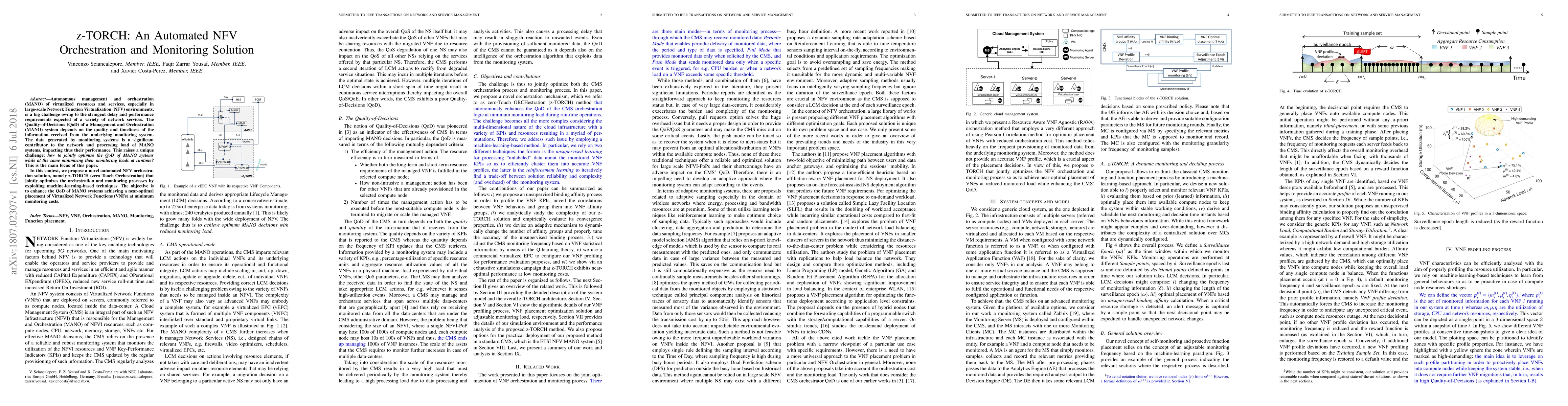 z-TORCH is an automated orchestration solution for Network Function Virtualization (NFV) that leverages machine-learning techniques to optimize both orchestration and monitoring processes. It aims to enhance the Quality-of-Decisions (QoD) of Management and Orchestration (MANO) systems while minimizing monitoring loads.