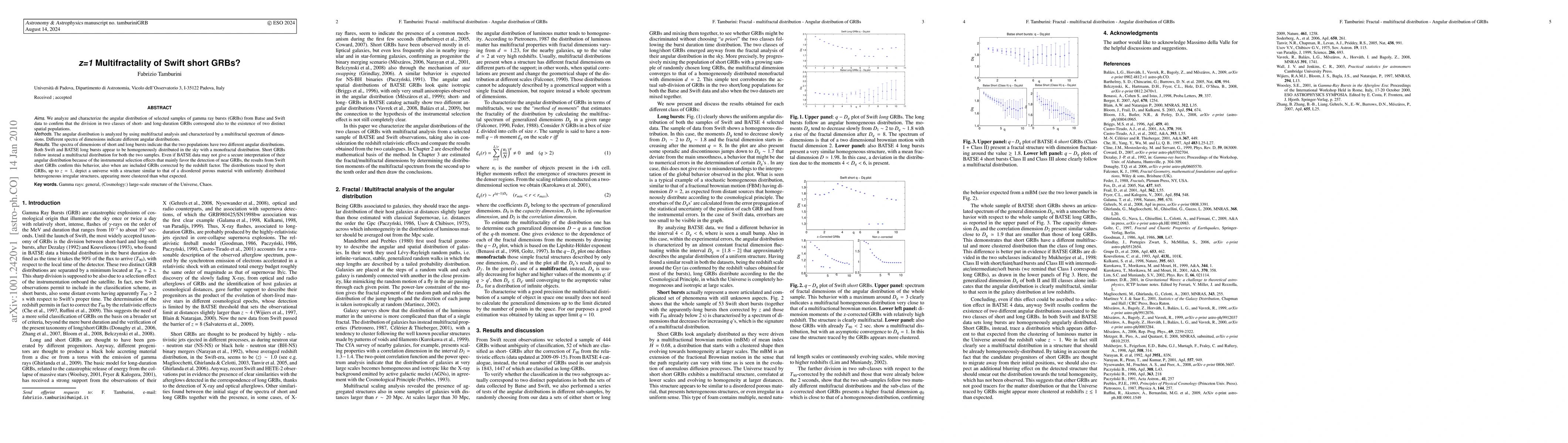 Gamma-ray bursts (GRBs) exhibit two distinct angular distributions: short GRBs follow a multifractal distribution, while long GRBs appear to be homogeneously distributed in the sky. This suggests a disordered universe with heterogeneous structures.