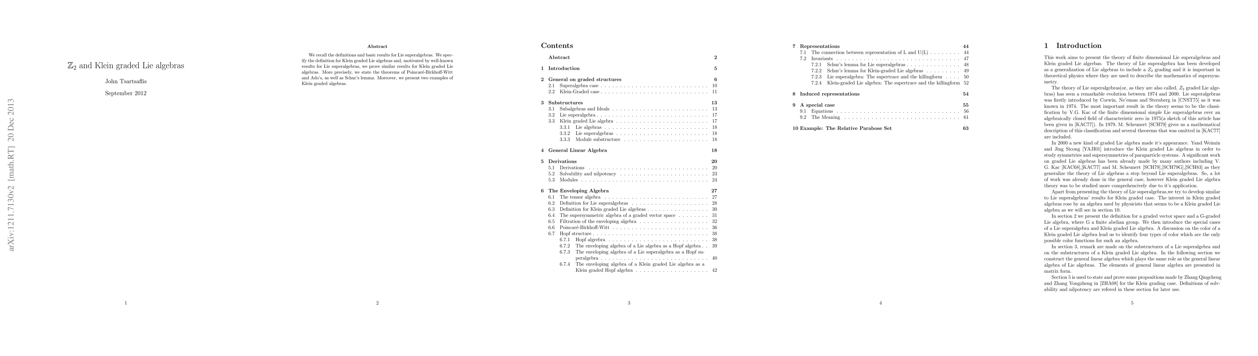 In this master's thesis, we recall the definitions and basic results for Lie superalgebras. We specify the definition for Klein graded Lie algebras and, motivated by well known results for Lie superalgebras, we prove similar results for Klein graded Lie algebras. More precisely, we state the theorems of Poincare-Birkhoff-Witt and Ado's, as well as Schur's lemma. Moreover, we present two examples of Klein graded algebra.