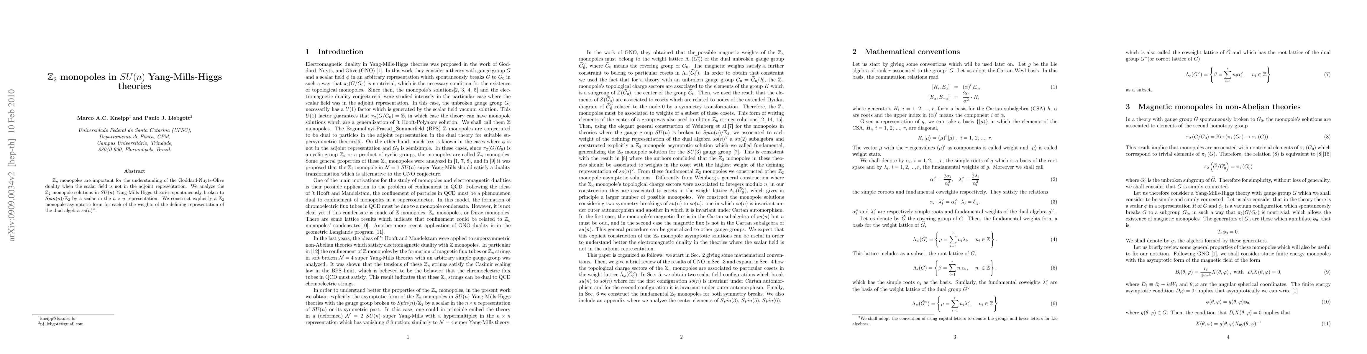 Summary: This paper explores Z(2) monopole solutions within SU(n) Yang-Mills-Higgs theories, focusing on their construction in spontaneously broken Spin(n)/Z(2) scenarios. It derives an asymptotic form for each weight of the defining representation relevant to the dual algebra.