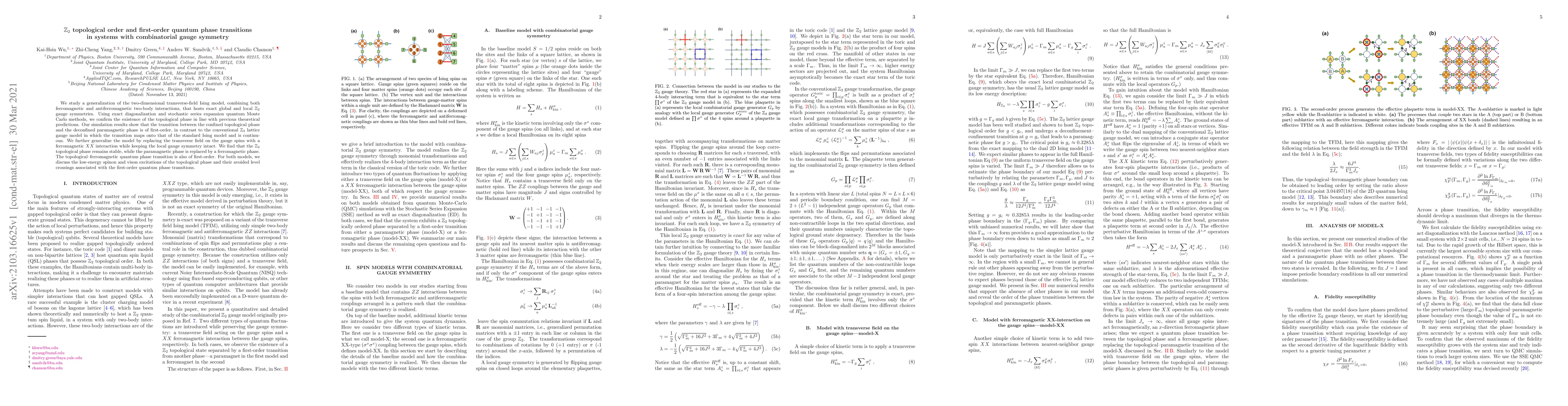 This paper investigates a generalized two-dimensional transverse-field Ising model with Z2 gauge symmetry, confirming a topological phase and revealing first-order quantum phase transitions instead of the expected continuous transitions. The study also explores a modified model with ferromagnetic XX interactions, maintaining the topological phase and introducing first-order transitions between topological and ferromagnetic phases.