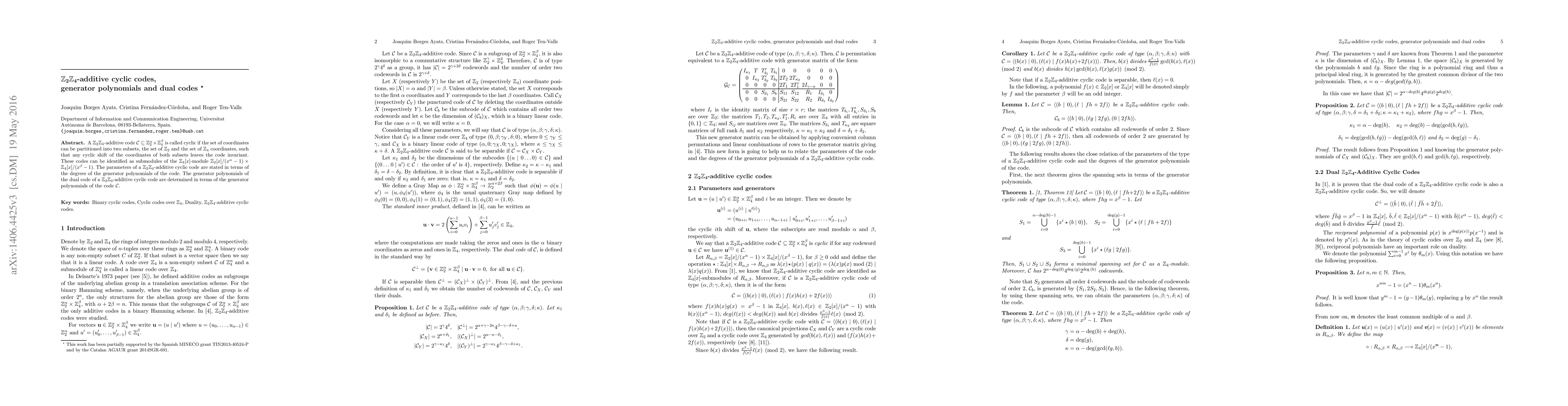 A ${\mathbb{Z}}_2{\mathbb{Z}}_4$-additive code ${\cal C}\subseteq{\mathbb{Z}}_2^\alpha\times{\mathbb{Z}}_4^\beta$ is called cyclic if the set of coordinates can be partitioned into two subsets, the set of ${\mathbb{Z}}_2$ and the set of ${\mathbb{Z}}_4$ coordinates, such that any cyclic shift of the coordinates of both subsets leaves the code invariant. These codes can be identified as submodules of the $\mathbb{Z}_4[x]$-module $\mathbb{Z}_2[x]/(x^\alpha-1)\times\mathbb{Z}_4[x]/(x^\beta-1)$. The parameters of a ${\mathbb{Z}}_2{\mathbb{Z}}_4$-additive cyclic code are stated in terms of the degrees of the generator polynomials of the code. The generator polynomials of the dual code of a ${\mathbb{Z}}_2{\mathbb{Z}}_4$-additive cyclic code are determined in terms of the generator polynomials of the code ${\cal C}$.