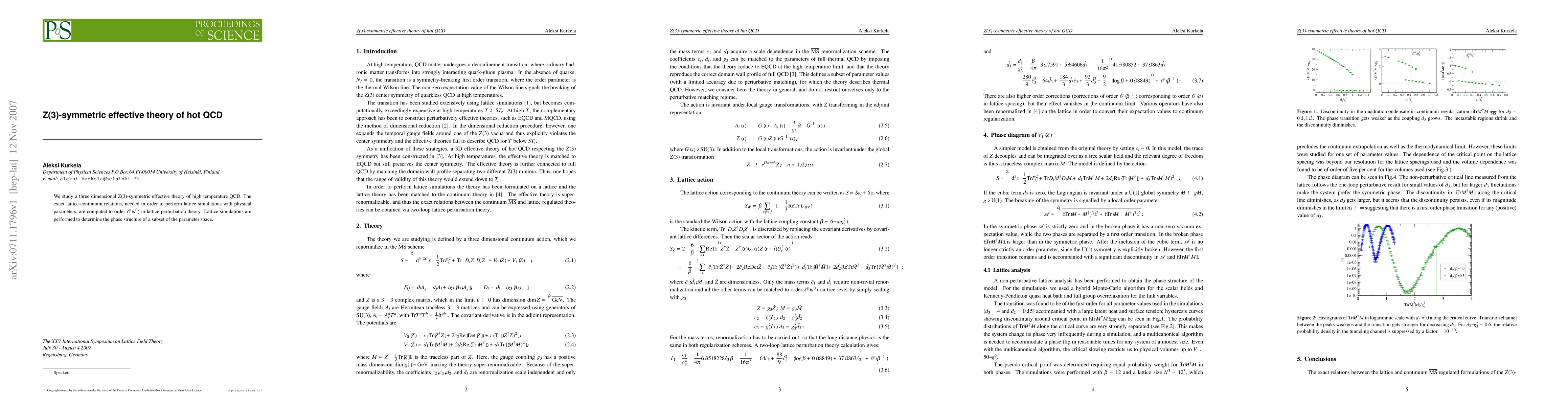 We study a three dimensional Z(3)-symmetric effective theory of high temperature QCD. The exact lattice-continuum relations, needed in order to perform lattice simulations with physical parameters, are computed to order O(a^0) in lattice perturbation theory. Lattice simulations are performed to determine the phase structure of a subset of the parameter space.