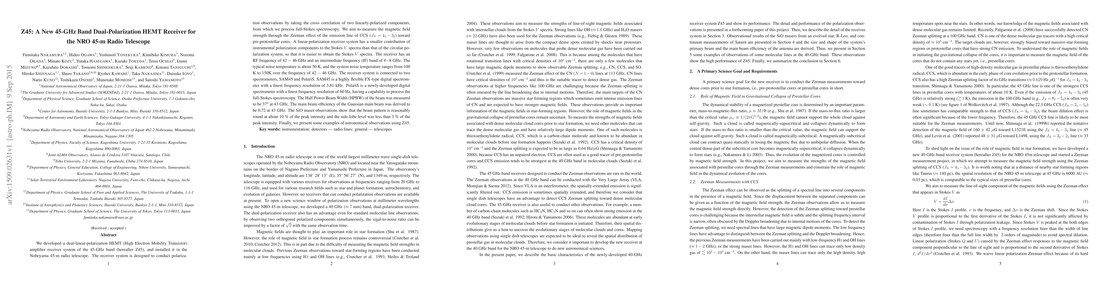 A new 45-GHz dual-polarization HEMT receiver system, Z45, was developed for the Nobeyama 45-m radio telescope to conduct polarization observations of pre-protostellar cores, offering improved Stokes V spectra with reduced instrumental polarization components.