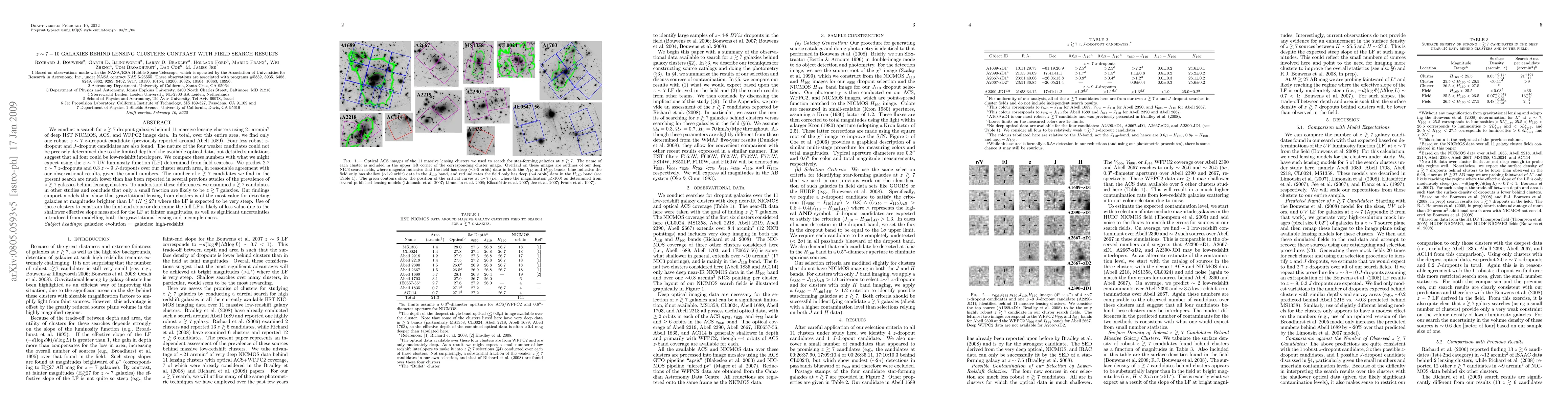 We conduct a search for z>~7 dropout galaxies behind 11 massive lensing clusters using 21 arcmin**2 of deep HST NICMOS, ACS, and WFPC2 image data. In total, over this entire area, we find only one robust z~7 z-dropout candidate (previously reported around Abell 1689). Four less robust z-dropout and J-dropout candidates are also found. The nature of the four weaker candidates could not be precisely determined due to the limited depth of the available optical data, but detailed simulations suggest that all four could be low-redshift interlopers. We compare these numbers with what we might expect using the z~7 UV luminosity function (LF) determined from field searches. We predict 2.7 z~7 z-dropouts and 0.3 z~9 J-dropouts over our cluster search area, in reasonable agreement with our observational results, given the small numbers. The number of z>~7 candidates we find in the present search are much lower than has been reported in several previous studies of the prevalence of z>~7 galaxies behind lensing clusters. To understand these differences, we examined z>~7 candidates in other studies and conclude that only a small fraction are likely to be z>~7 galaxies. Our findings support models that show that gravitational lensing from clusters is of the most value for detecting galaxies at magnitudes brighter than L* (H<~ 27) where the LF is expected to be very steep. Use of these clusters to constrain the faint-end slope or determine the full LF is likely of less value due to the shallower effective slope measured for the LF at fainter magnitudes, as well as significant uncertainties introduced from modelling both the gravitational lensing and incompleteness.