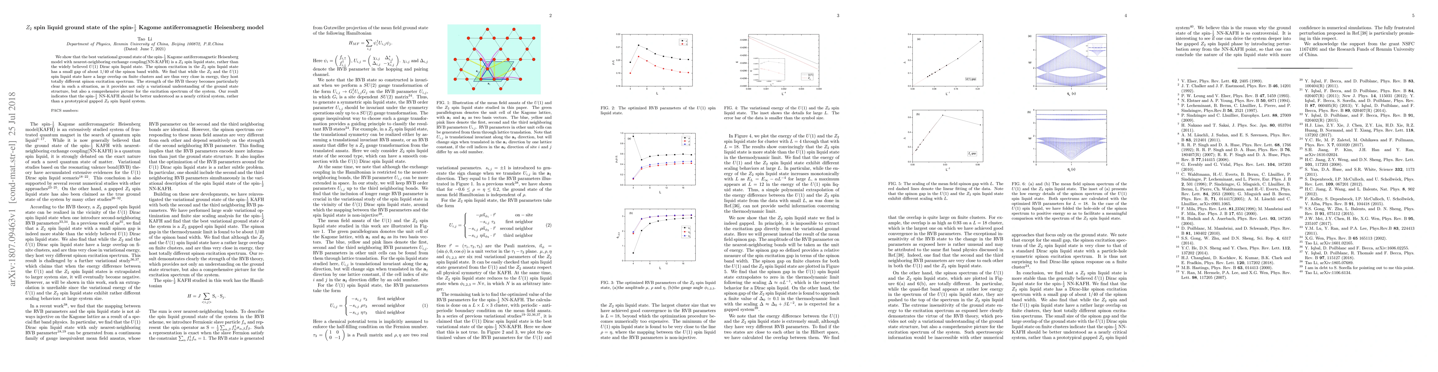 This paper demonstrates that the spin-$\frac{1}{2}$ Kagome antiferromagnetic Heisenberg model exhibits a $Z_{2}$ spin liquid ground state instead of a $U(1)$ Dirac spin liquid state, with a small gap in the spinon excitation spectrum. The study highlights the distinct excitation spectrum of the $Z_{2}$ spin liquid compared to the $U(1)$ state, despite their close energies.