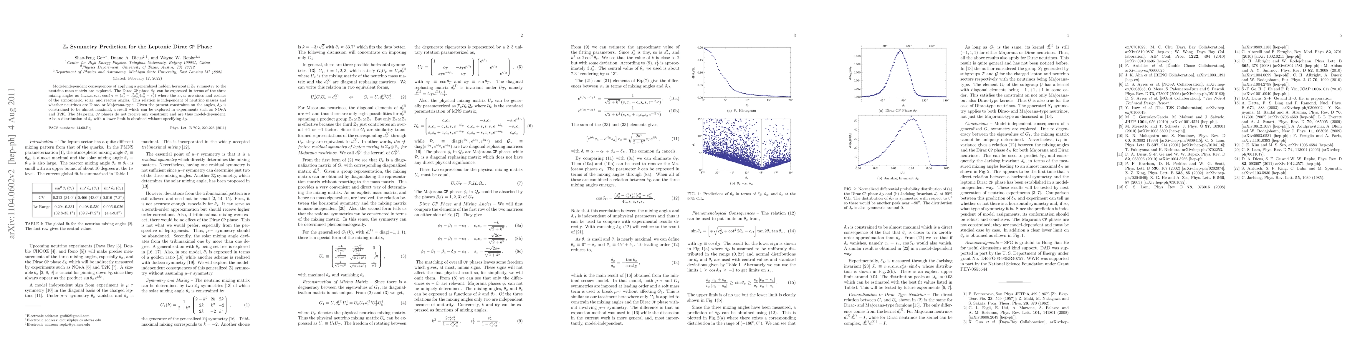 Model-independent consequences of applying a generalized hidden horizontal Z_2 symmetry to the neutrino mass matrix are explored. The Dirac CP phase delta_D can be expressed in terms of the three mixing angles as 4 c_a s_a c_s s_s s_x cos delta_D = (s^2_s - c^2_s s^2_x) (c^2_a - s^2_a) where the s_i, c_i are sines and cosines of the atmospheric, solar, and reactor angles. This relation is independent of neutrino masses and whether neutrinos are Dirac- or Majorana-type. Given the present constraints on the angles, delta_D is constrained to be almost maximal, a result which can be explored in experiments such as NOvA and T2K. The Majorana CP phases do not receive any constraint and are thus model-dependent. Also a distribution of theta_x with a lower limit is obtained without specifying delta_D.