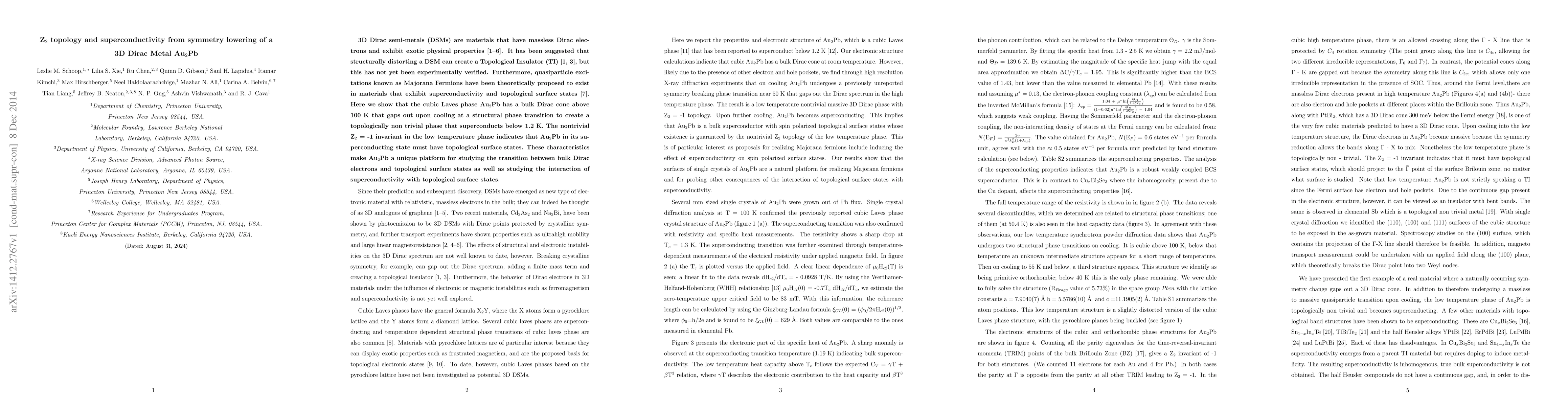 This paper demonstrates that the cubic Laves phase Au$_2$Pb undergoes a structural phase transition that gaps its bulk Dirac cone, creating a topologically non-trivial phase with a Z$_2$ = -1 invariant. The material exhibits superconductivity below 1.2 K, indicating the presence of topological surface states.