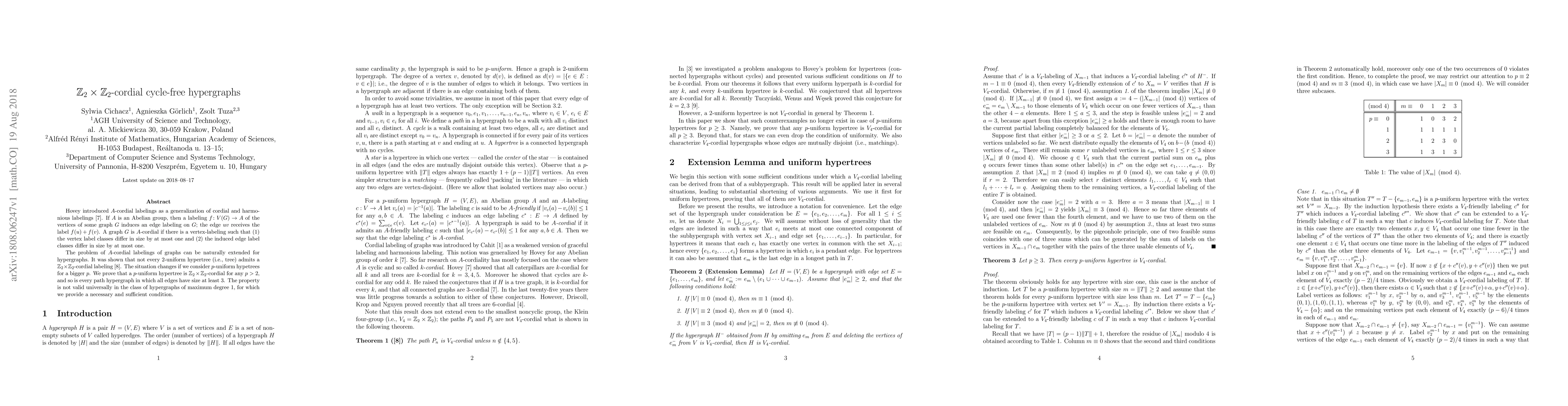 Hovey introduced $A$-cordial labelings as a generalization of cordial and harmonious labelings \cite{Hovey}. If $A$ is an Abelian group, then a labeling $f \colon V (G) \rightarrow A$ of the vertices of some graph $G$ induces an edge labeling on $G$, the edge $uv$ receives the label $f (u) + f (v)$. A graph $G$ is $A$-cordial if there is a vertex-labeling such that (1) the vertex label classes differ in size by at most one and (2) the induced edge label classes differ in size by at most one. The problem of $A$-cordial labelings of graphs can be naturally extended for hypergraphs. It was shown that not every $2$-uniform hypertree (i.e., tree) admits a $Z_2\times Z_2$-cordial labeling \cite{Pechnik}. The situation changes if we consider $p$-uniform hypetrees for a bigger $p$. We prove that a $p$-uniform hypertree is $Z_2\times Z_2$-cordial for any $p>2$, and so is every path hypergraph in which all edges have size at least~3. The property is not valid universally in the class of hypergraphs of maximum degree~1, for which we provide a necessary and sufficient condition.