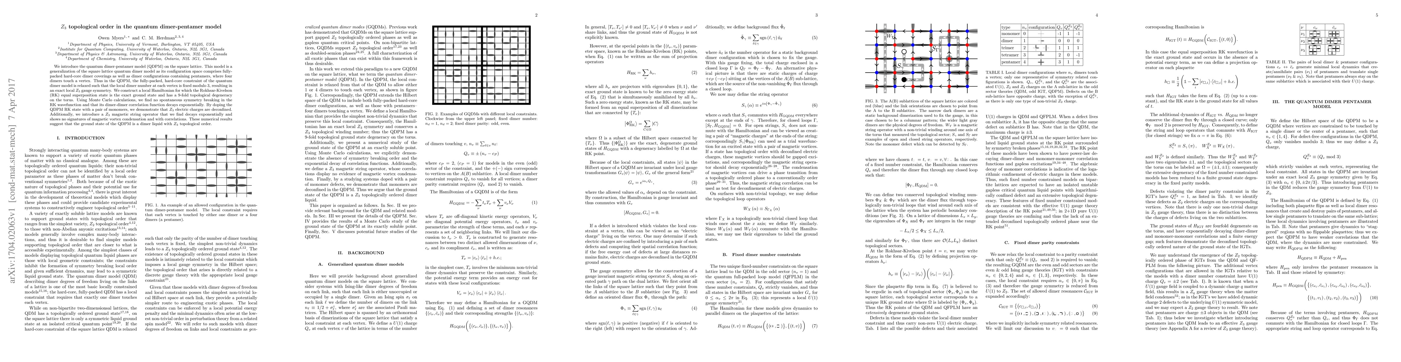This paper introduces the quantum dimer-pentamer model (QDPM) on the square lattice, which generalizes the quantum dimer model by allowing configurations with pentamers. The QDPM exhibits exact local $Z_3$ gauge symmetry and has a 9-fold topological degeneracy, indicating $Z_3$ topological order. Numerical simulations show no spontaneous symmetry breaking and exponential decay of correlations, suggesting the ground state is a dimer liquid.