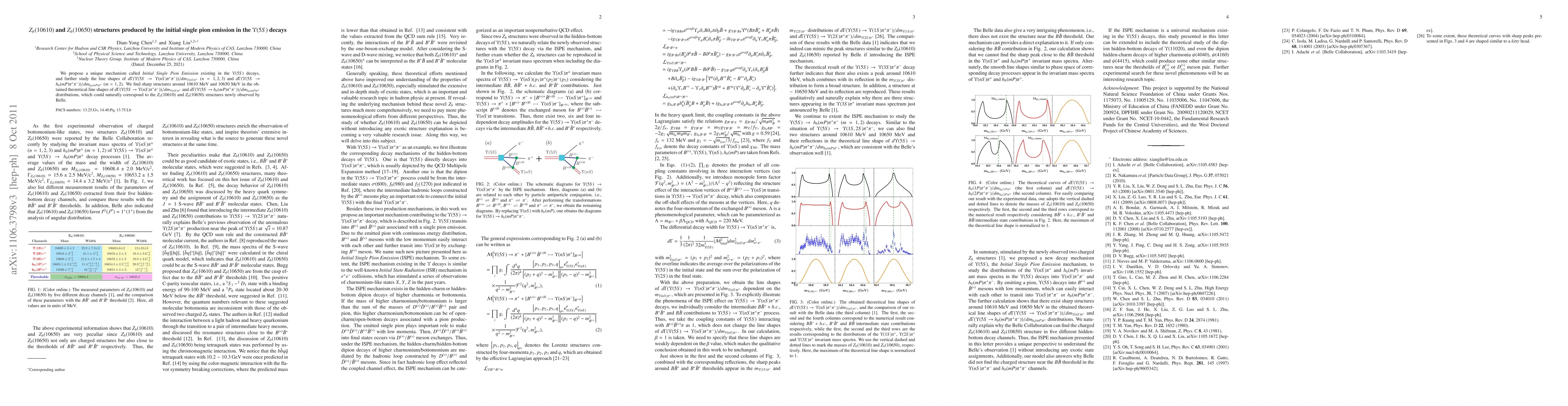 This paper proposes a unique mechanism called Initial Single Pion Emission in $\Upsilon(5S)$ decays, analyzing the line shapes of decay distributions. It identifies sharp structures around 10610 MeV and 10650 MeV corresponding to the newly observed $Z_b(10610)$ and $Z_b(10650)$ particles.