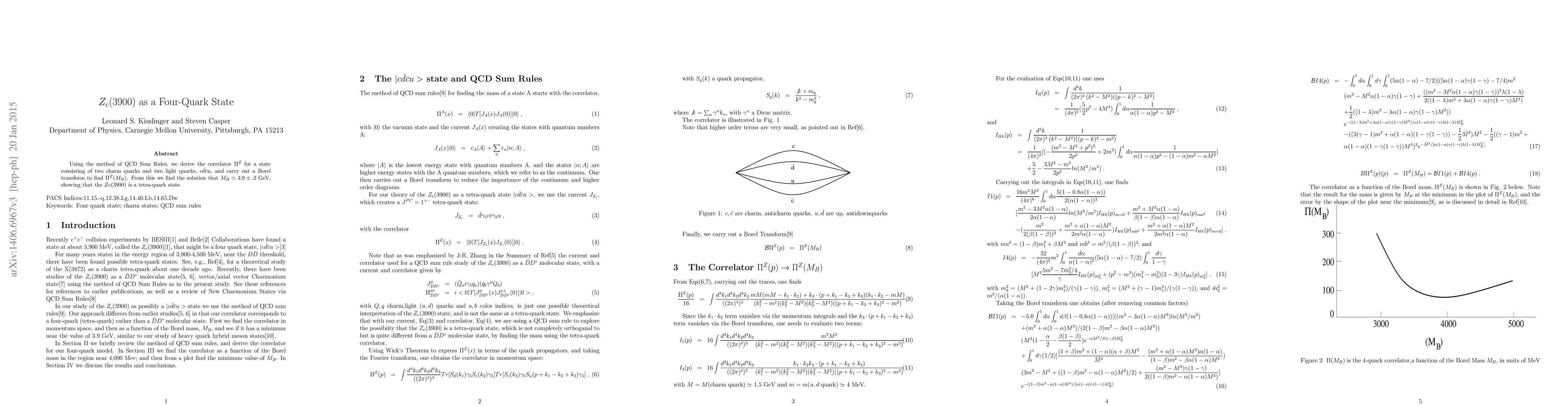 The research utilizes QCD Sum Rules to analyze the $Z_c(3900)$ particle, identifying it as a four-quark state composed of two charm quarks and two light quarks. The study concludes that $Z_c(3900)$ has a mass around $3.9 \pm .2$ GeV, confirming its tetra-quark nature.
