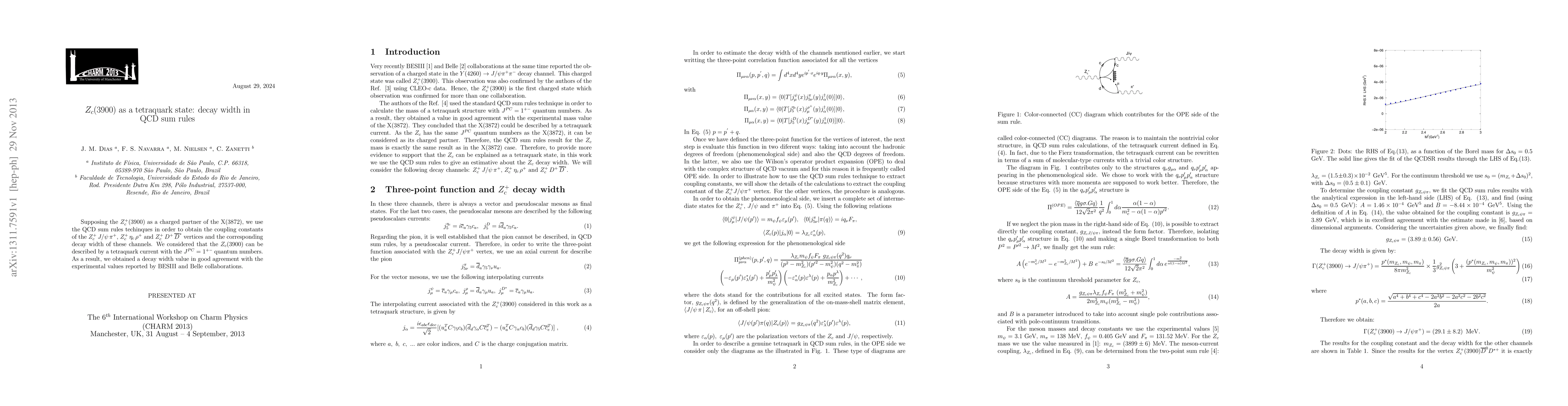 Supposing the $Z_{c}^{+}(3900)$ as a charged partner of the X(3872), we use the QCD sum rules techinques in order to obtain the coupling constants of the $Z_{c}^{+} \, J/\psi\, \pi^{+}$, $Z_{c}^{+}\, \eta_{c}\, \rho^{+}$ and $Z_{c}^{+}\,D^{+}\, \bar{D}^{*}$ vertices and the corresponding decay width of these channels. We considered that the $Z_{c}(3900)$ can be described by a tetraquark current with the $J^{PC}=1^{+-}$ quantum numbers. As a result, we obtained a decay width value in good agreement with the experimental values reported by BESIII and Belle collaborations.