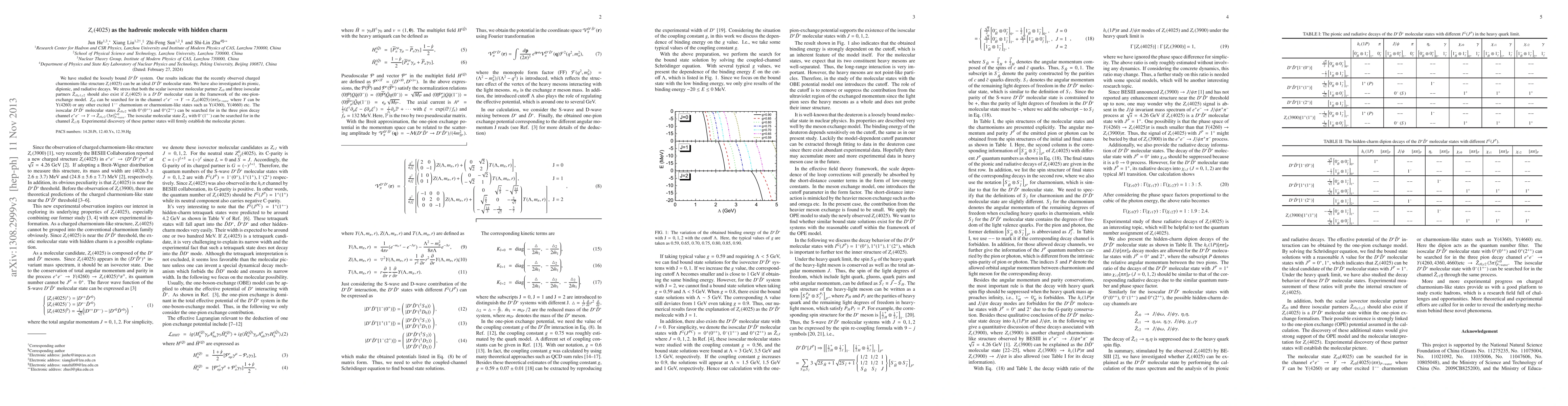 We have studied the loosely bound $D^*\bar{D}^*$ system. Our results indicate that the recently observed charged charmonium-like structure $Z_c(4025)$ can be an ideal $D^*\bar{D}^*$ molecular state. We have also investigated its pionic, dipionic, and radiative decays. We stress that both the scalar isovector molecular partner $Z_{c0}$ and three isoscalar partners ${\tilde Z}_{c0,c1,c2}$ should also exist if $Z_c(4025)$ is a $D^*\bar{D}^*$ molecular state {in the framework of the one-pion-exchange model}. $Z_{c0}$ can be searched for in the channel $e^+e^-\to Y \to Z_{c0}(4025)\left(\pi\pi\right)_{P-wave}$ where $Y$ can be Y(4260) or any other excited $1^{--}$ charmonium or charmonium-like states such as Y(4360), Y(4660) etc. The isoscalar $D^*\bar{D}^*$ molecular states ${\tilde Z}_{c0,c2}$ with $0^+(0^{++})$ and $0^+(2^{++})$ can be searched for in the three pion decay channel $e^+e^-\to Y \to {\tilde Z}_{c0,c2} \left(3\pi\right)^{I=0}_{P-wave}$. The isoscalar molecular state ${\tilde Z}_{c1}$ with $0^-(1^{+-})$ can be searched for in the channel ${\tilde Z}_{c1}\eta$. Experimental discovery of these partner states will firmly establish the molecular picture.