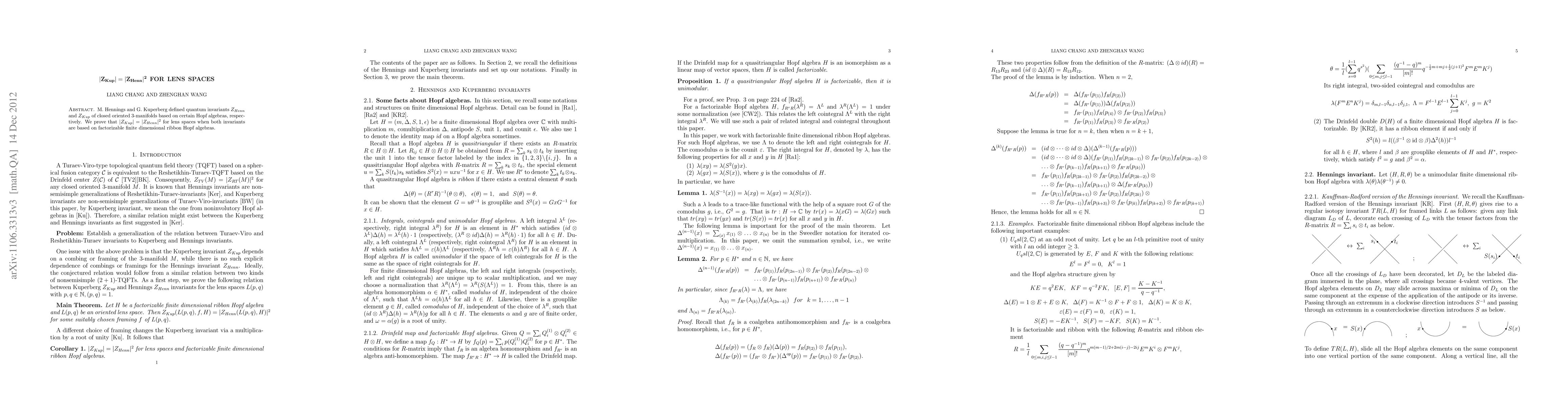 M. Hennings and G. Kuperberg defined quantum invariants Z_{Henn} and Z_{Kup} of closed oriented 3-manifolds based on certain Hopf algebras, respectively. We prove that |Z_{Kup}|=|Z_{Henn}|^2 for lens spaces when both invariants are based on factorizable finite dimensional ribbon Hopf algebras.