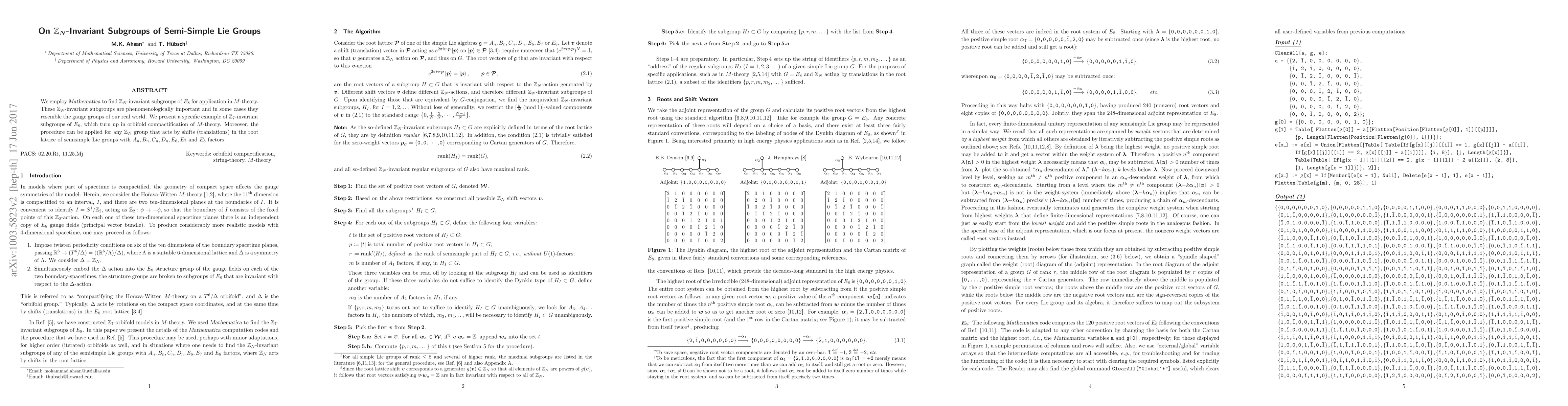 This paper uses Mathematica to identify $Z_N$-invariant subgroups of the $E_8$ Lie group for M-theory applications, specifically focusing on $Z_7$ subgroups relevant in M-theory orbifold compactifications. The method can generalize to other $Z_N$ actions on root lattices of various semi-simple Lie groups.