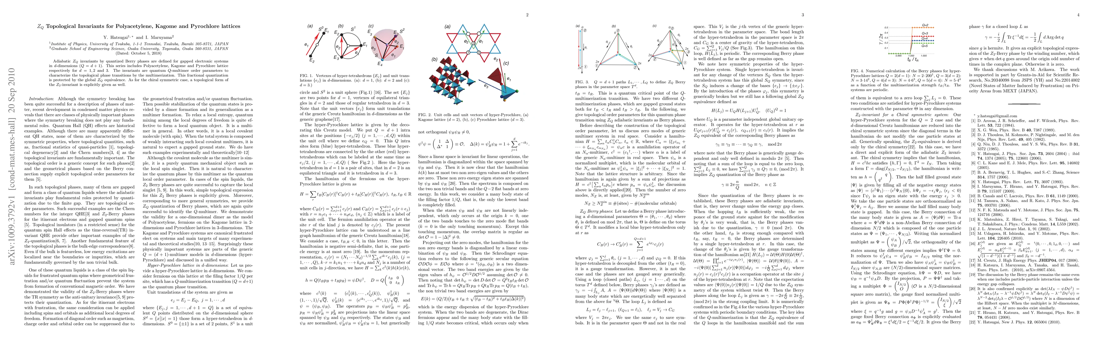 Adiabatic $Z_Q$ invariants by quantized Berry phases are defined for gapped electronic systems in $d$-dimensions ($Q=d+1$). This series includes Polyacetylene, Kagome and Pyrochlore lattice respectively for $d=1,2$ and 3. The invariants are quantum $Q$-multimer order parameters to characterize the topological phase transitions by the multimerization. This fractional quantization is protected by the global $Z_Q$ equivalence. As for the chiral symmetric case, a topological form of the $Z_2$-invariant is explicitly given as well.