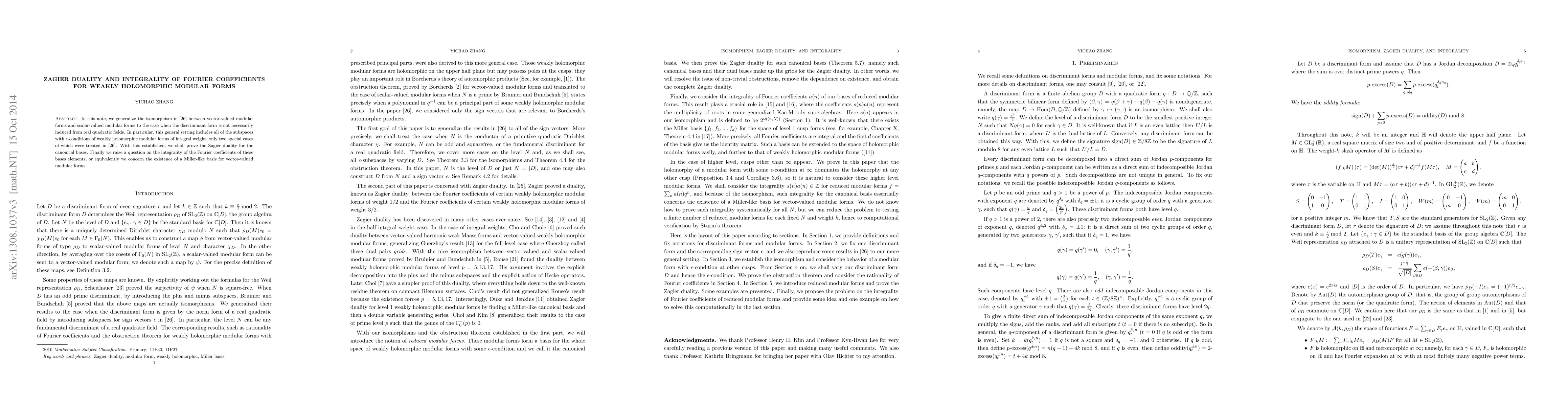 In this note, we generalize the isomorphisms to the case when the discriminant form is not necessarily induced from real quadratic fields. In particular, this general setting includes all the subspaces with epsilon-conditions, only two spacial cases of which were treated before. With this established, we shall prove the Zagier duality for canonical bases. Finally, we raise a question on the integrality of the Fourier coefficients of these bases elements, or equivalently we concern the existence of a Miller-like basis for vector valued modular forms.