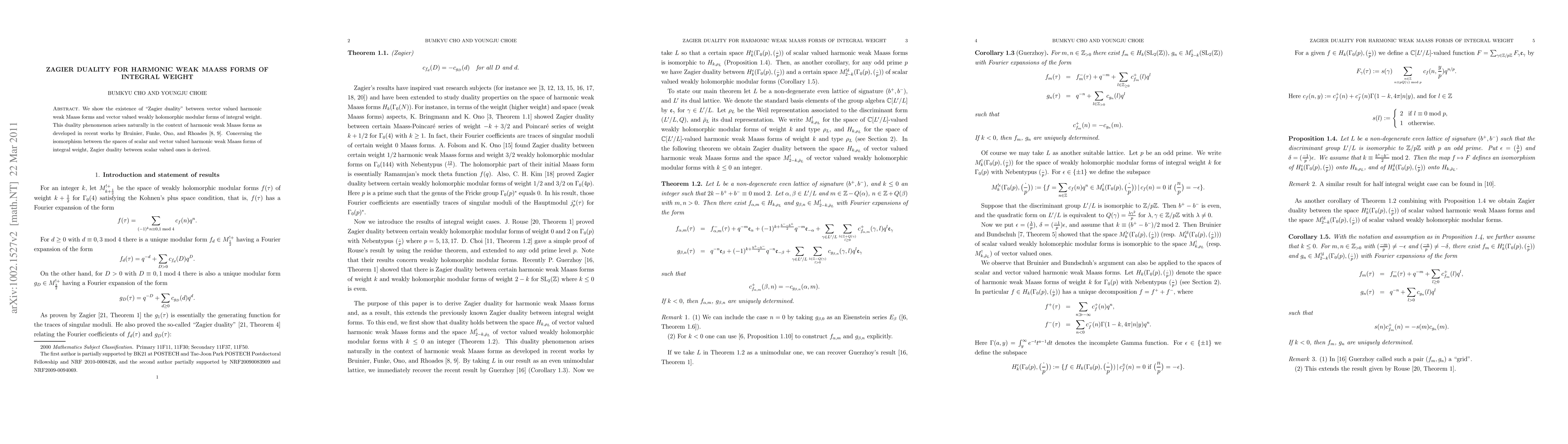 The paper establishes Zagier duality between vector valued harmonic weak Maass forms and vector valued weakly holomorphic modular forms of integral weight, with a specific focus on the isomorphism between the spaces of scalar and vector valued harmonic weak Maass forms. This duality is a natural outcome of recent developments in the field.