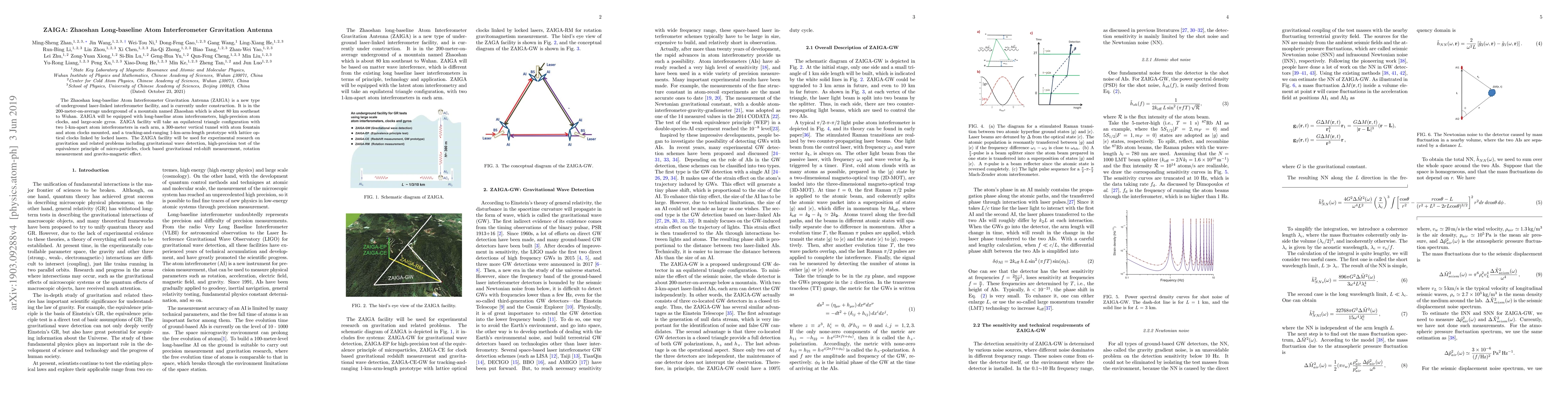 ZAIGA is a new underground laser-linked interferometer facility under construction in Zhaoshan, designed for high-precision experiments on gravitation, including gravitational wave detection and tests of the equivalence principle. It features long-baseline atom interferometers and advanced atom clocks.