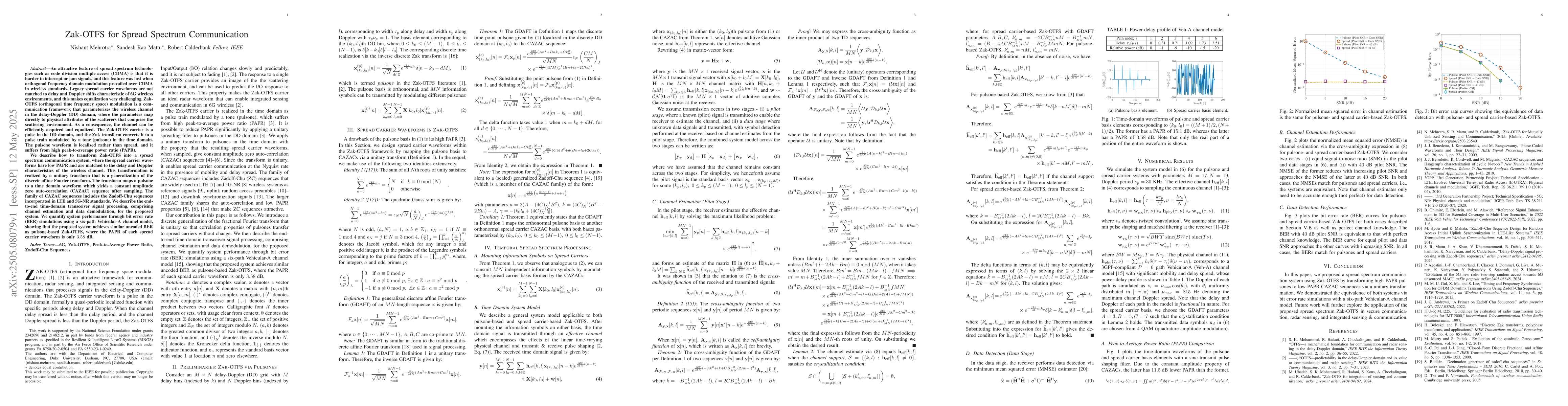 A method to transform Zak-OTFS modulation into a spread spectrum communication system using a unitary transform that generalizes the discrete affine Fourier transform, resulting in low PAPR spread carrier waveforms matched to delay and Doppler characteristics.