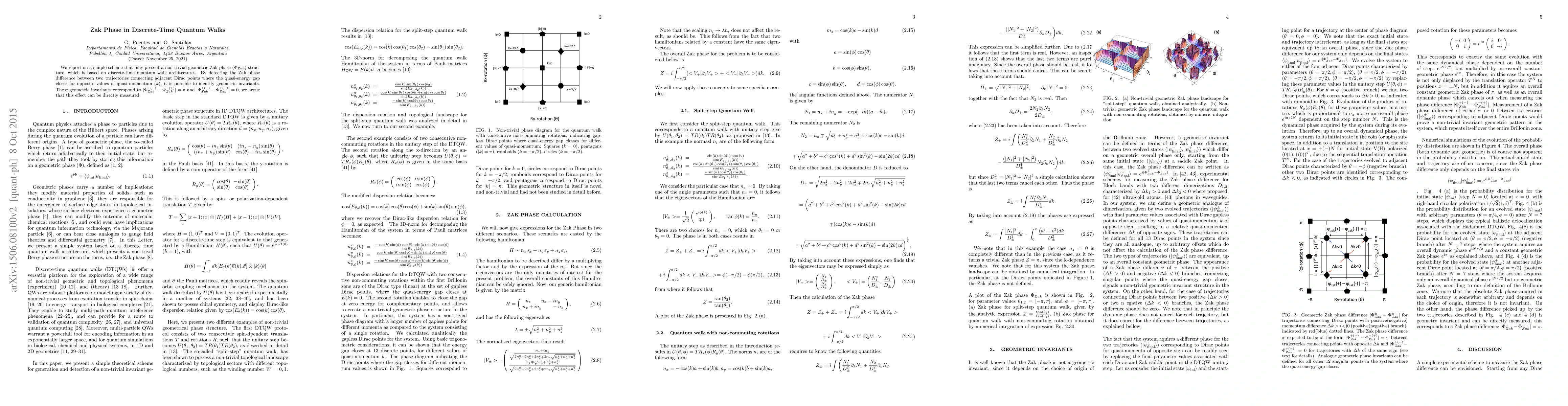 This paper proposes a scheme for detecting a non-trivial geometric Zak phase in discrete-time quantum walks, identifying geometric invariants through quasi-energy gap closures at opposite quasi-momenta. The measurable phase difference between trajectories indicates these invariants, potentially offering direct measurement of the Zak phase.