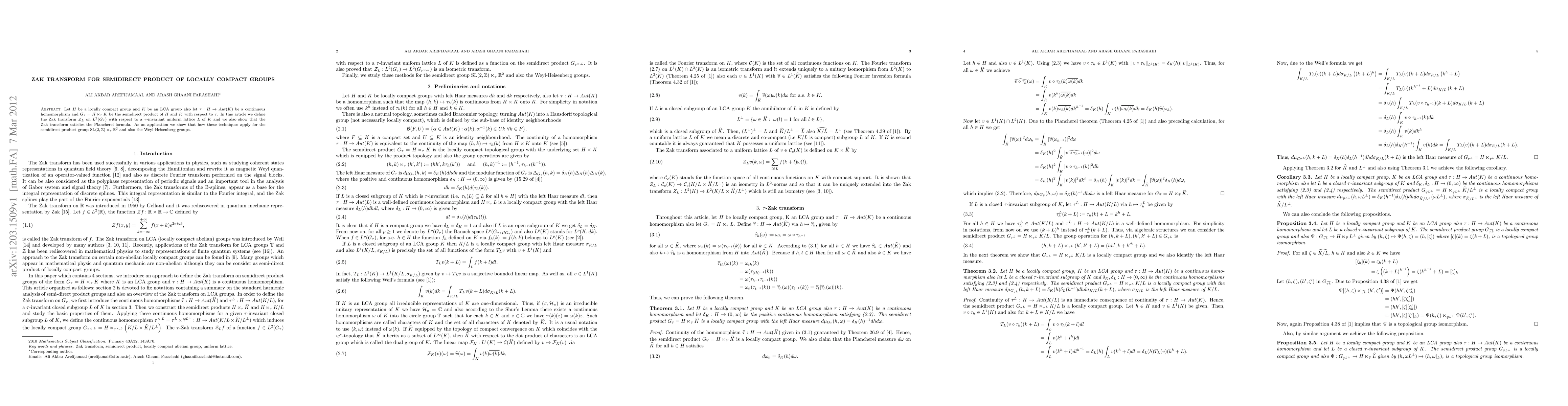 This paper defines the Zak transform on $L^2(G_\tau)$ for the semidirect product $G_\tau=H\ltimes_\tau K$ and proves it satisfies the Plancherel formula. It applies these techniques to the group $\mathrm{SL}(2,\mathbb{Z})\ltimes_\tau\mathbb{R}^2$ and Weyl-Heisenberg groups.
