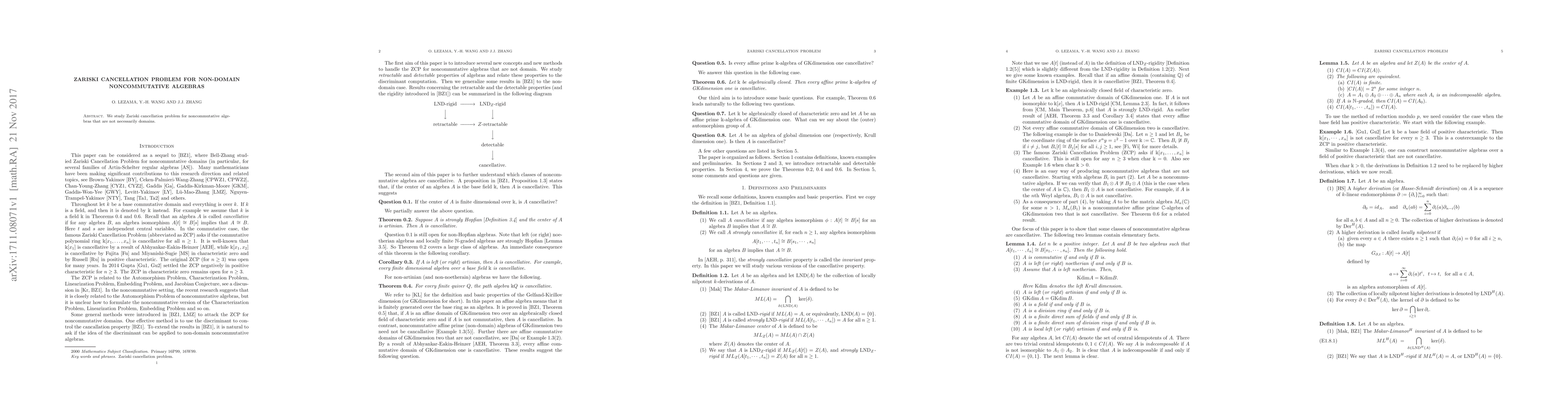 We study Zariski cancellation problem for noncommutative algebras that are not necessarily domains.