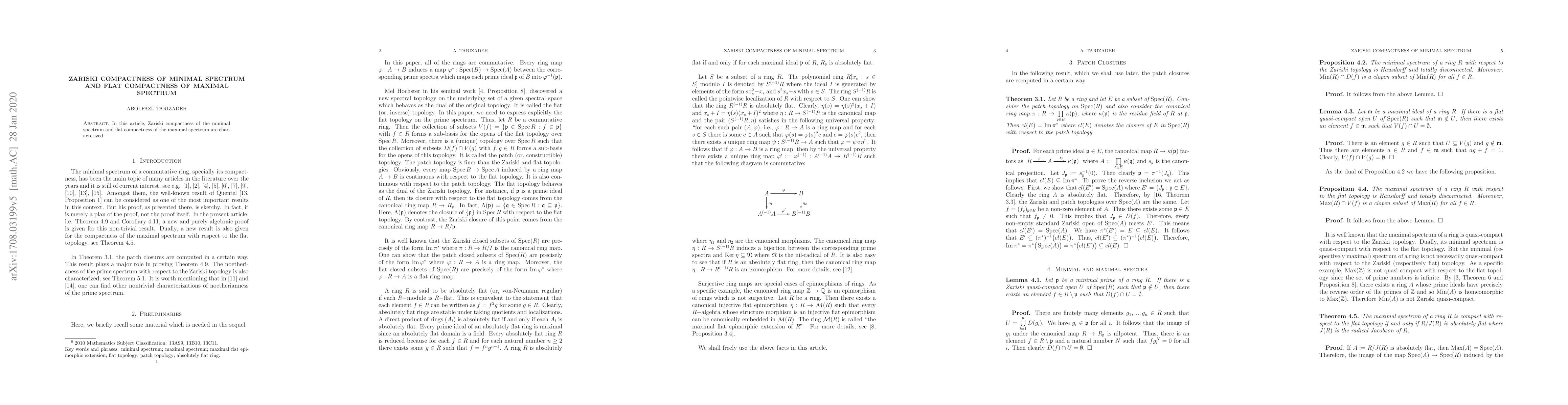 In this article, Zariski compactness of the minimal spectrum and flat compactness of the maximal spectrum are characterized.