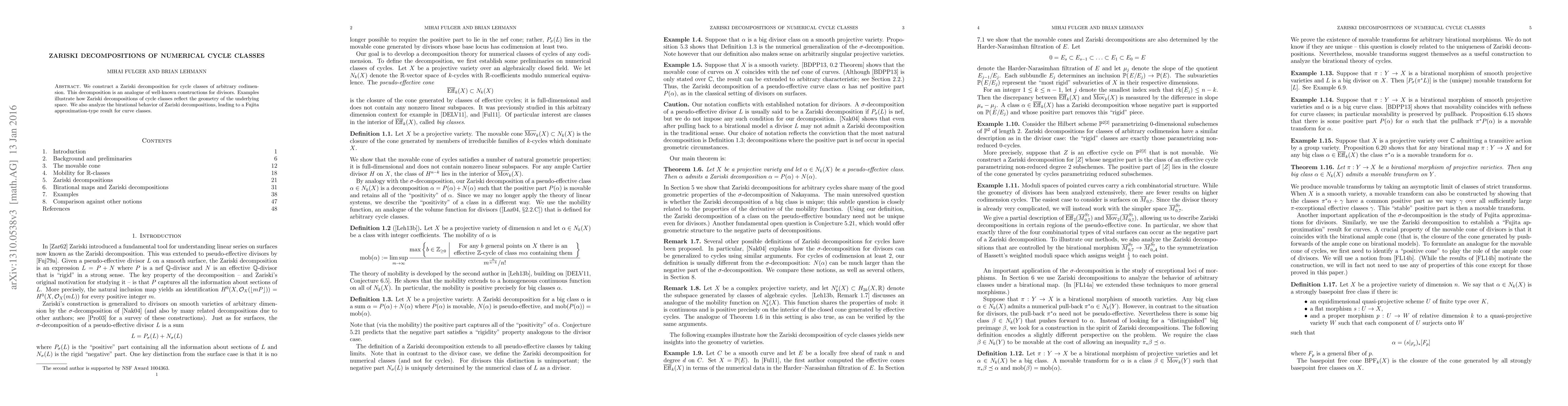 Summary: This paper constructs a Zariski decomposition for cycle classes of any codimension, analogous to divisor decompositions, and examines its birational behavior, culminating in a Fujita approximation result for curve classes. Examples highlight how these decompositions reveal the underlying geometric structure.