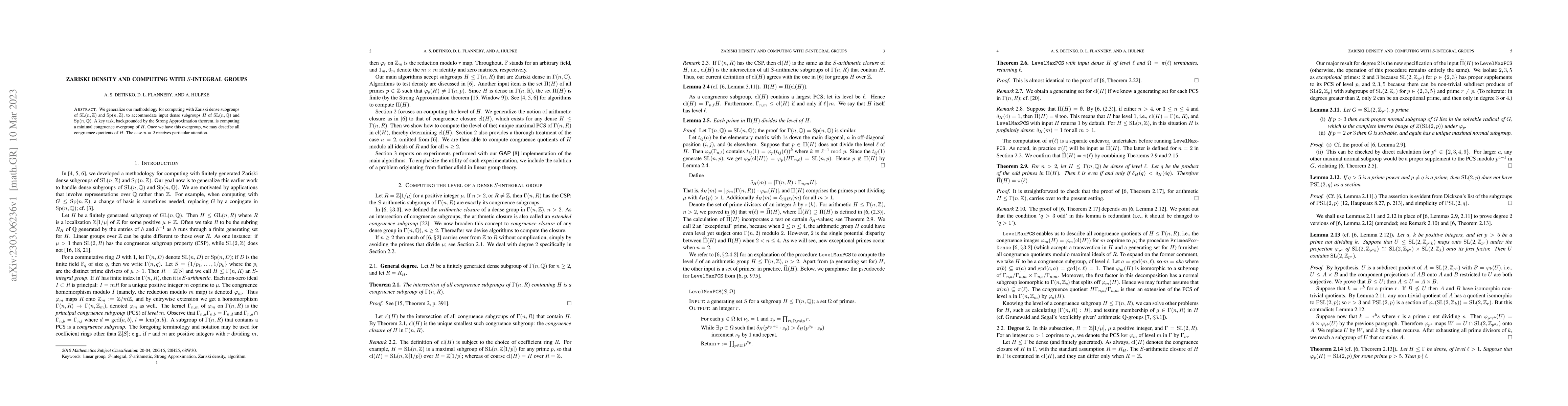 The paper generalizes the methodology for computing with Zariski dense subgroups of SL(n, ℤ) and Sp(n, ℤ) to accommodate input dense subgroups H of SL(n, ℚ) and Sp(n, ℚ). The key task involves computing a minimal congruence overgroup of H, facilitating the description of all congruence quotients of H.