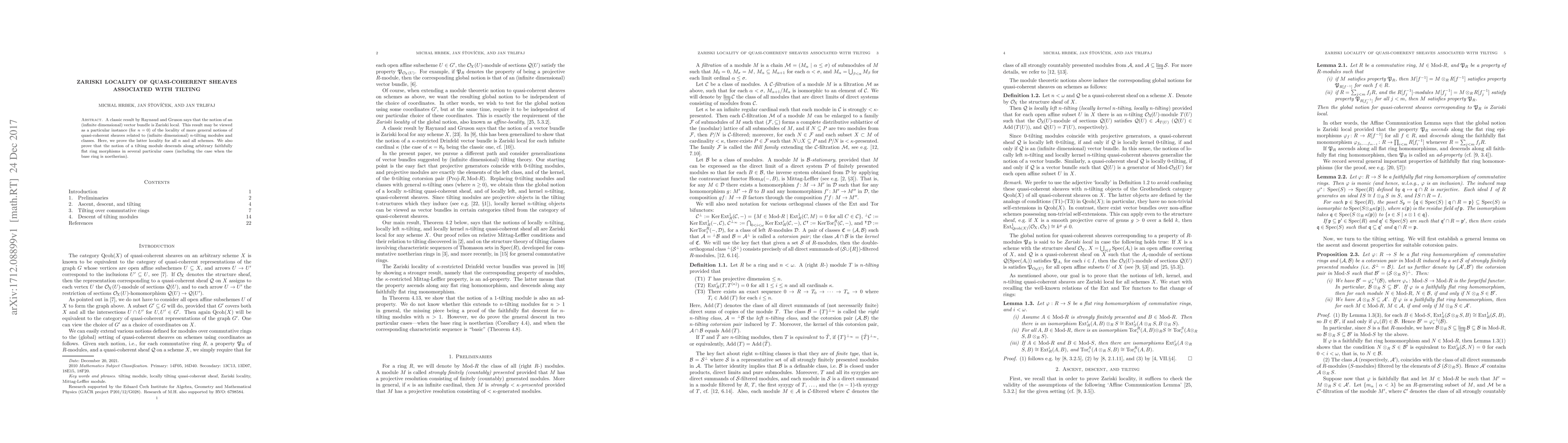 This paper proves the Zariski locality of quasi-coherent sheaves associated with n-tilting modules for all n and on all schemes, extending a classic result for vector bundles. It also demonstrates the descent property of tilting modules along faithfully flat ring morphisms under certain conditions.