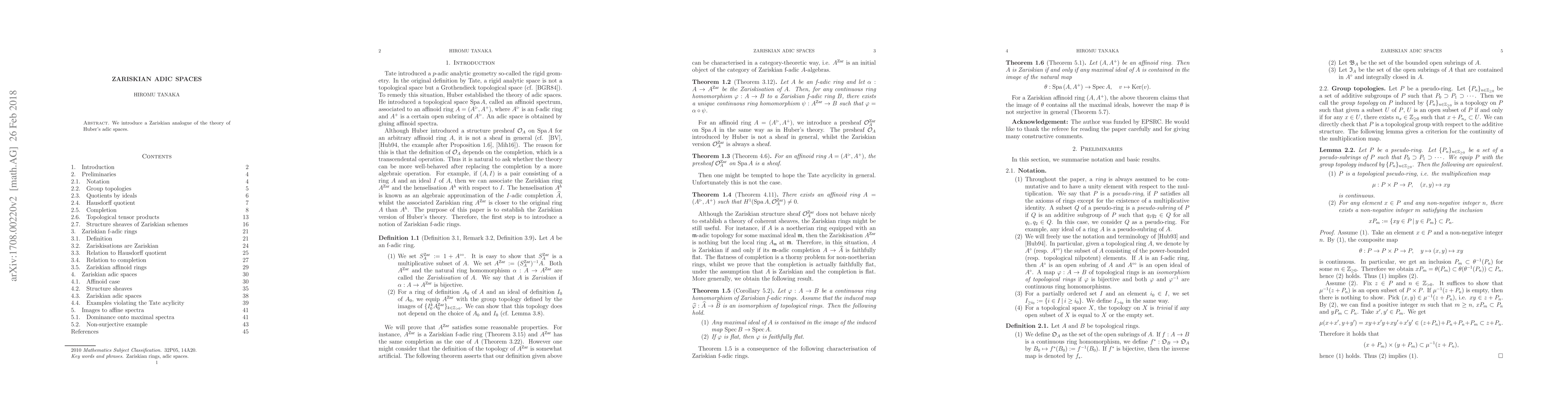 Summary: This paper introduces a Zariskian analogue of Huber's adic spaces, aiming to provide a framework for studying schemes with a Zariski topology perspective. The new approach retains essential properties of adic spaces while adapting them to the Zariskian context.