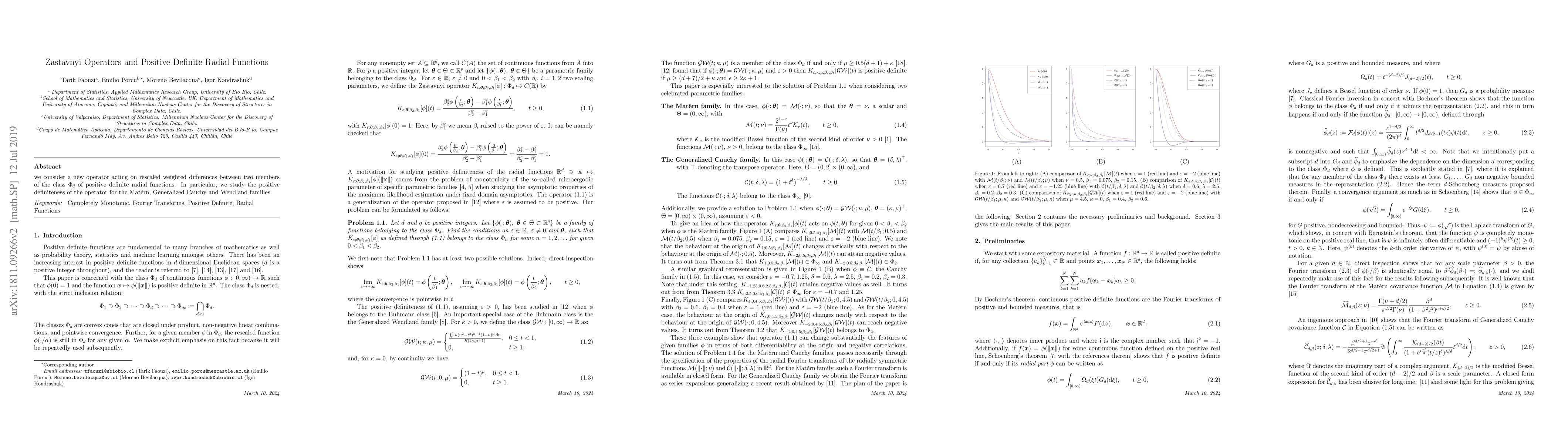 This paper introduces a new operator acting on rescaled weighted differences between positive definite radial functions, focusing on its positive definiteness for Matérn, Generalized Cauchy, and Generalized Wendland families. The operator enables governing differentiability at the origin and achieving negative correlations.