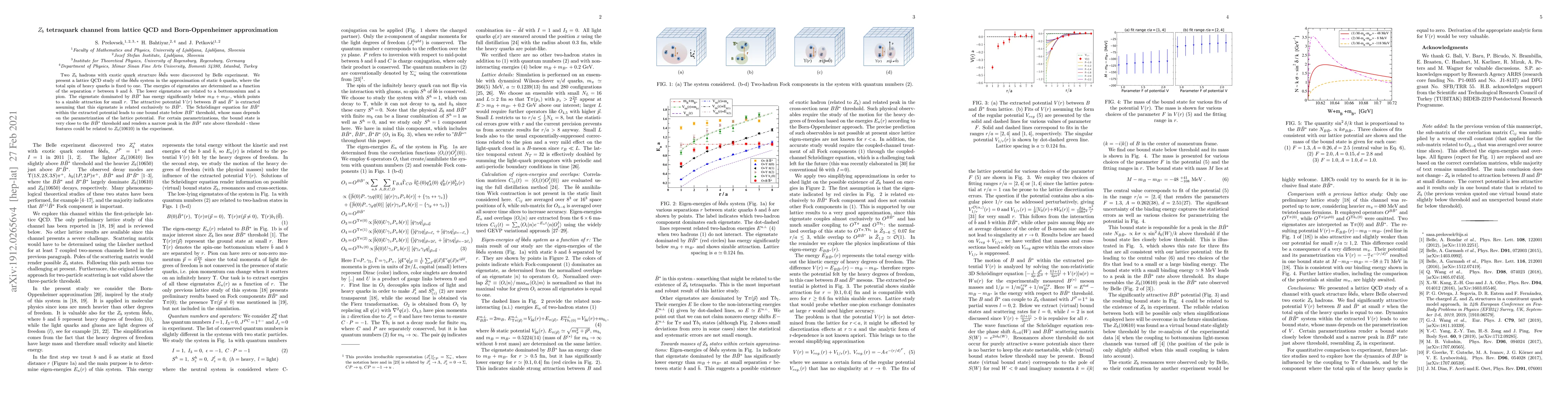 Two $Z_b$ hadrons with exotic quark structure $\bar bb\bar du$ were discovered by Belle experiment. We present a lattice QCD study of the $\bar bb\bar du$ system in the approximation of static $b$ quarks, where the total spin of heavy quarks is fixed to one. The energies of eigenstates are determined as a function of the separation $r$ between $b$ and $\bar b$. The lower eigenstates are related to a bottomonium and a pion. The eigenstate dominated by $B\bar B^*$ has energy significantly below $m_B+m_{B^*}$, which points to a sizable attraction for small $r$. The attractive potential $V(r)$ between $B$ and $\bar B^*$ is extracted assuming that this eigenstate is related exclusively to $B\bar B^*$. The Schr\"odinger equation for $B\bar B^*$ within the extracted potential leads to one bound state below $B\bar B^*$ threshold, whose mass depends on the parametrization of the lattice potential. For certain parametrizations, the bound state is very close to the $B\bar B^*$ threshold and renders a narrow peak in the $B\bar B^*$ rate above threshold - these features could be related to $Z_b(10610)$ in the experiment.