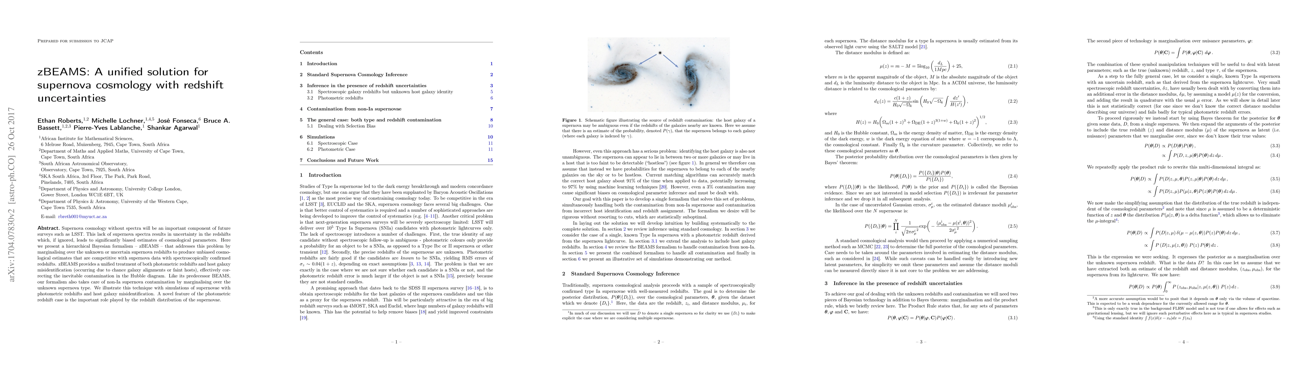 zBEAMS is a hierarchical Bayesian method that mitigates redshift uncertainties in supernova cosmology, producing unbiased estimates of cosmological parameters. It effectively corrects for photometric redshift errors and host galaxy misidentification, providing a unified approach competitive with spectroscopically confirmed data.