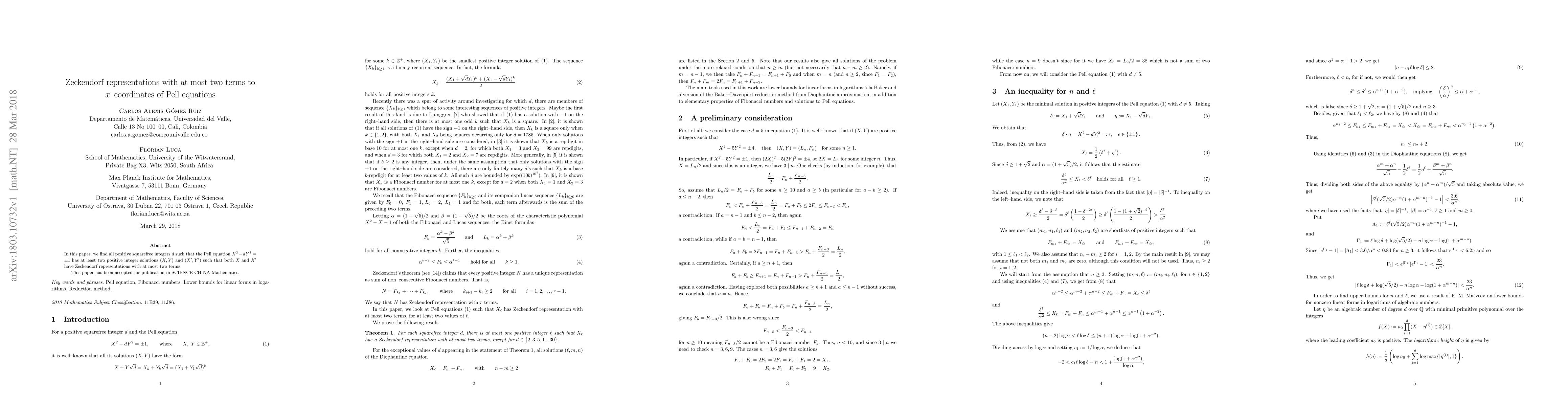 This paper identifies positive squarefree integers d for which the Pell equation X²-dY² = ±1 has at least two positive integer solutions where both solutions have Zeckendorf representations using at most two terms. The findings contribute to the understanding of Pell equations in relation to Zeckendorf representations.
