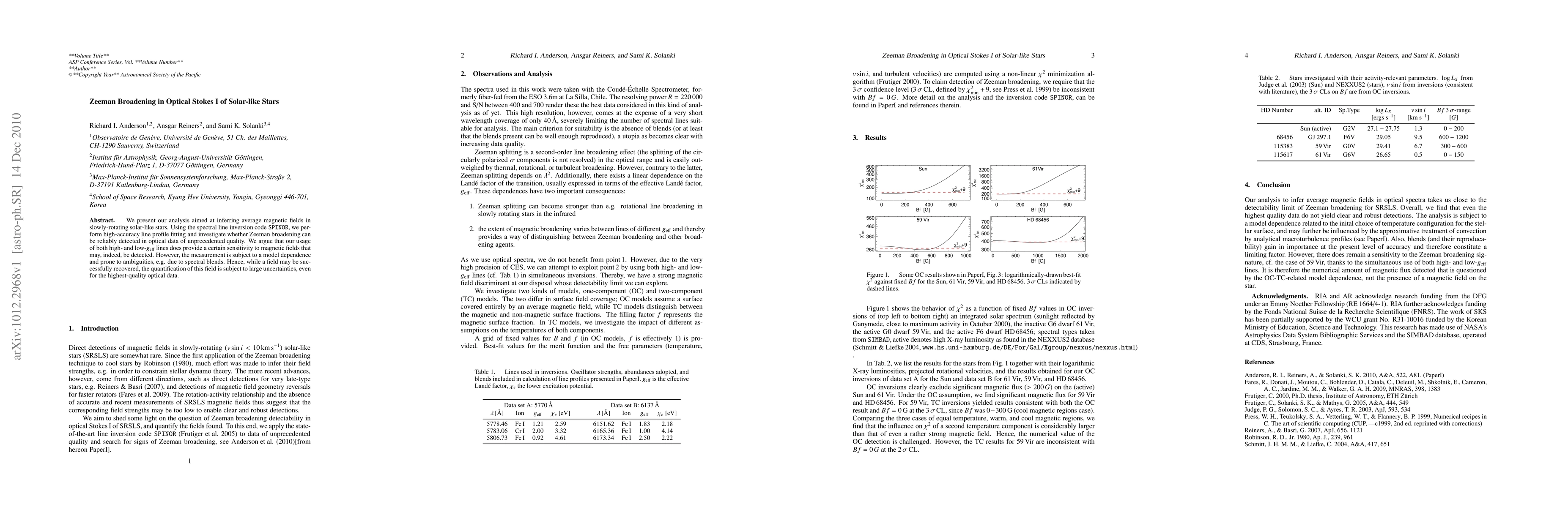 We present our analysis aimed at inferring average magnetic fields in slowly-rotating solar-like stars. Using the spectral line inversion code SPINOR, we perform high-accuracy line profile fitting and investigate whether Zeeman broadening can be reliably detected in optical data of unprecedented quality. We argue that our usage of both high- and low-g_{eff} lines does provide a certain sensitivity to magnetic fields that may, indeed, be detected. However, the measurement is subject to a model dependence and prone to ambiguities, e.g. due to spectral blends. Hence, while a field may be successfully recovered, the quantification of this field is subject to large uncertainties, even for the highest-quality optical data.