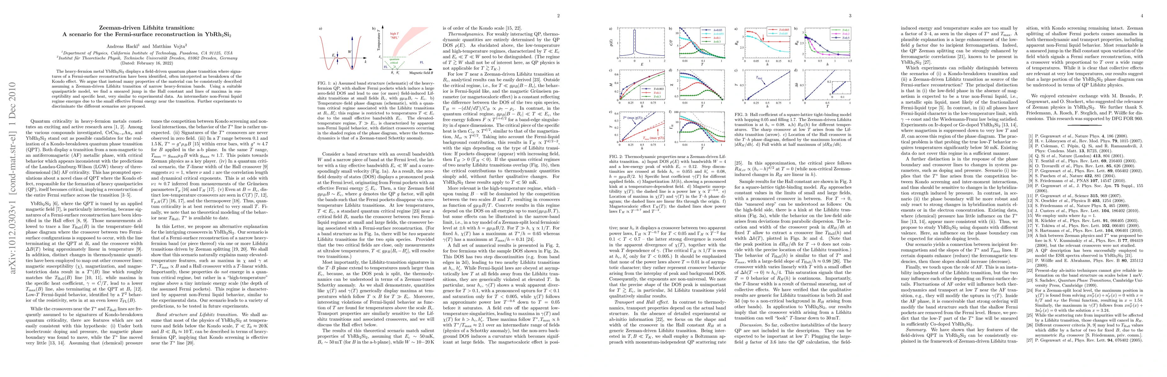 This paper proposes that the quantum phase transition in YbRh2Si2 is a Zeeman-driven Lifshitz transition rather than a breakdown of the Kondo effect, leading to Fermi-surface reconstruction. Experimental data and theoretical models align with smeared Hall constant jumps and susceptibility/specific heat maxima.