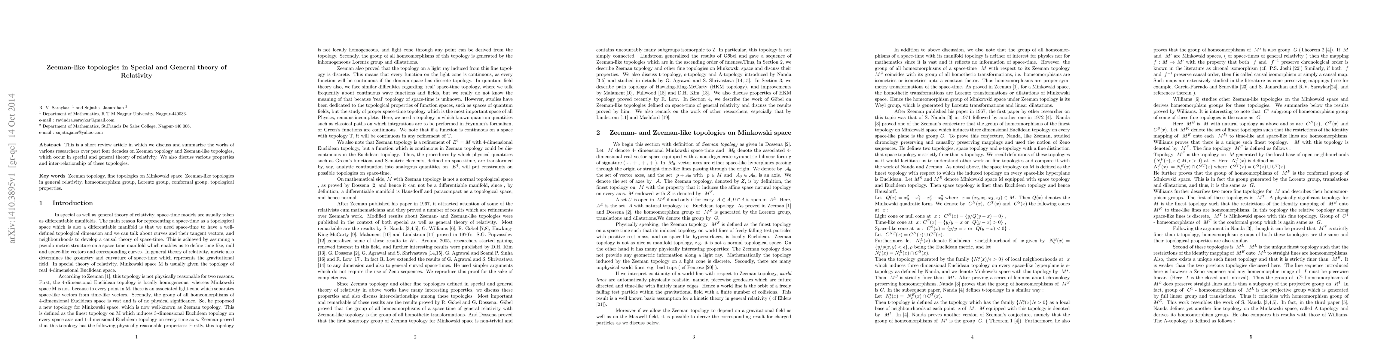 This paper reviews four decades of research on Zeeman topologies within the frameworks of special and general relativity, highlighting their properties and inter-relationships. It synthesizes findings from various studies to provide a comprehensive overview of these topological phenomena.