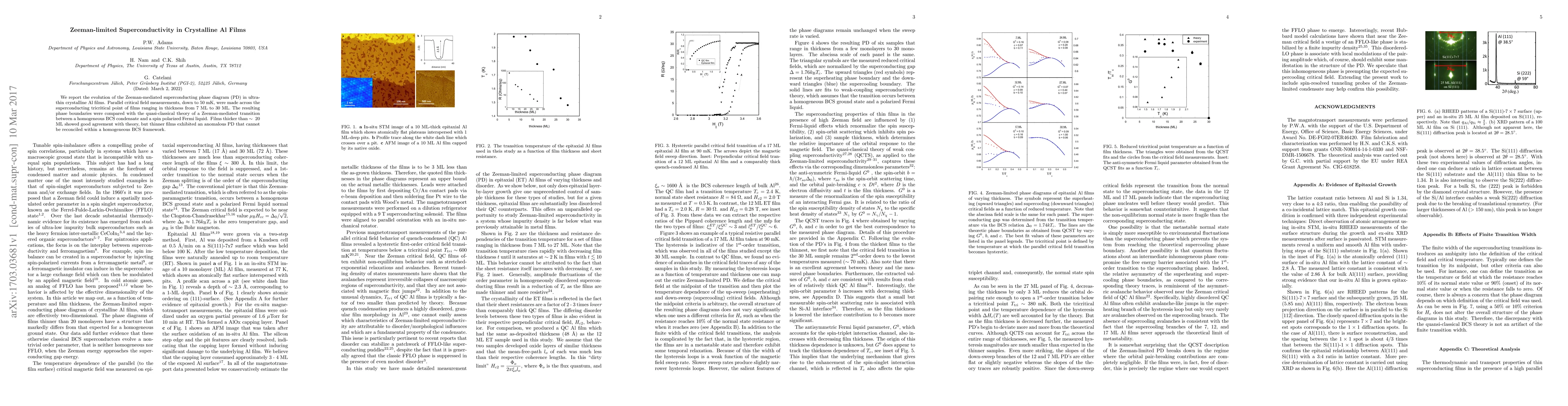 We report the evolution of the Zeeman-mediated superconducting phase diagram (PD) in ultra-thin crystalline Al films. Parallel critical field measurements, down to 50 mK, were made across the superconducting tricritical point of films ranging in thickness from 7 ML to 30 ML. The resulting phase boundaries were compared with the quasi-classical theory of a Zeeman-mediated transition between a homogeneous BCS condensate and a spin polarized Fermi liquid. Films thicker than $\sim$20 ML showed good agreement with theory, but thinner films exhibited an anomalous PD that cannot be reconciled within a homogeneous BCS framework.