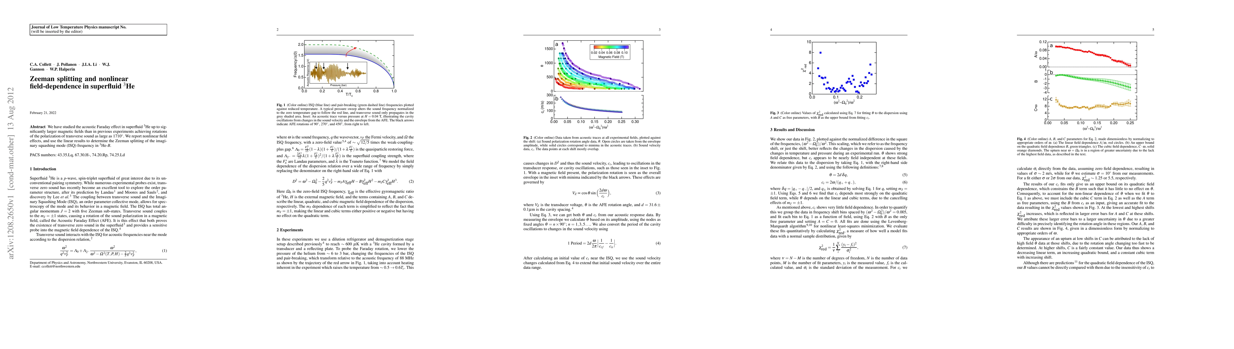 This research investigates the acoustic Faraday effect in superfluid 3He under high magnetic fields, observing rotations of sound polarization up to 1710°, and reports nonlinear field-dependence. The study determines the Zeeman splitting of the imaginary squashing mode frequency in 3He-B using the linear results.